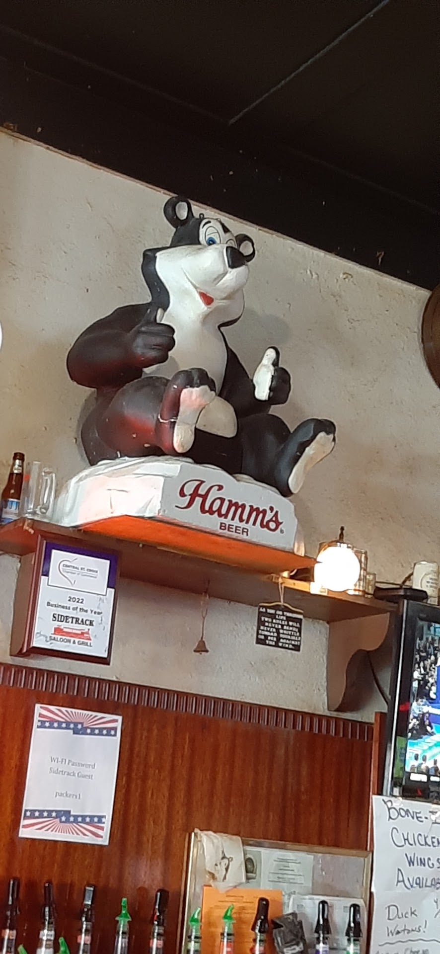 The place to go if you like old Hamms paraphernalia. Standard selections of tap beers, nice cold mug, lotsa other bottled beers and seltzer’s. Food items are fairly limited- appetizers and burgers. Nice thing is that the friendly bar tender prepares all the food right behind the bar. Couldn’t find any WiFi...