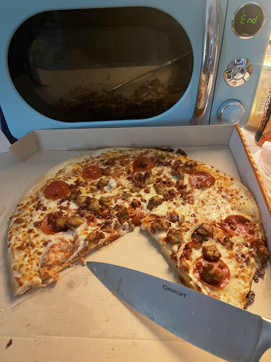 Read moreI like this location and have bought a few pizzas here. I think it closed because the employees went on strike (quit). It’s open again and I’m sure they are doing the best they can to stay open, but it needs to close for a few days of serious training. Bought two pizzas by the time I made it home the one box was dripping grease. The first pizza looked and tasted good but grease was too heavy box was soaked. (Not good for presentation or the owners wallet as the supplies are clearly getting wasted and I will explain this later.) the first pizza was missing a portion of the crust on one side and an abundance on the other. The second pizza box was not oily but the pizza was burnt and the box contained crunchy burnt bits around the pizza probably from the pan (seasoned portions falling off) when your trying to get repeat customers presentation and taking the time to put out a properly baked and cut product sells itself and failing at this simple act of paying attention costs customers. Back to cheese bread the bread was cut shallow and multiple attempts to make a straight cut. Slow down pay attention. To your product and focus on finishing all tasks correctly apologize for extended times. Once the product is consistently good focus on time. Housekeeping is reflected in the product so I’m sure there are housekeeping issues to address. I’m including pictures to help understand how bad this experience was and how much grease was in that one pizza box. I’m doing this so someday I may be able to get a cheap but good product that I usually get from the namesake. So far here that has not been the case and now it’s somehow worse. Oh I forgot to add that the bread box had at least 10 liners that were half out of the bottom and the box wouldn’t stay closed just to address the waste from rushing. I should add this place was not busy. And the items I got were hot and ready (cool and greasy and burnt) you can’t expect to keep doors open with the absolute...