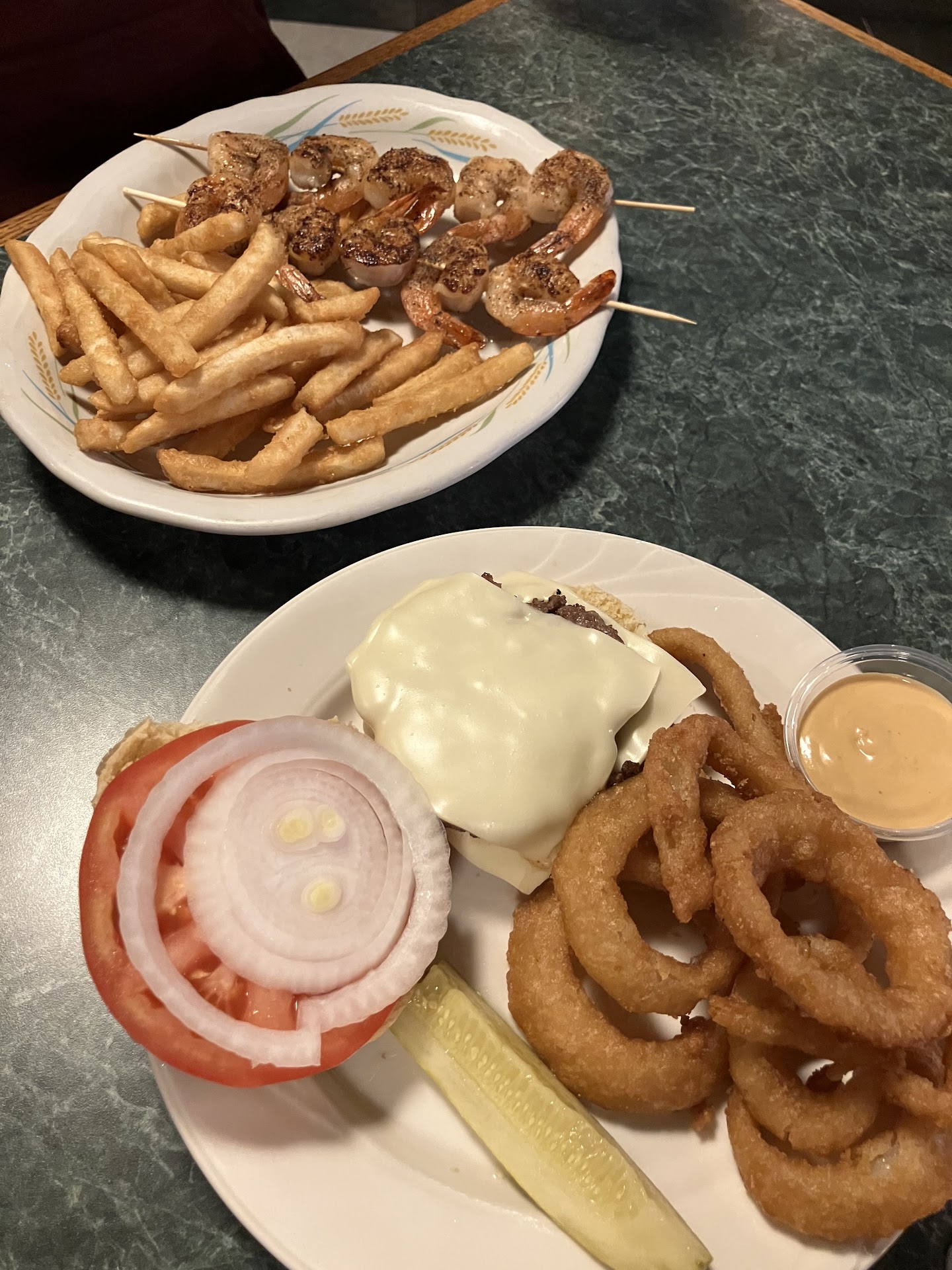 The food took a little longer then we expected, but we soon found out why. It appeared to be all freshly made. That's right, no frozen Bubba Burgers here. Real burgers on real buns. And no skimping on the fries here, we got a full old school serving. My son opted for pickle fries which were odd but actually pretty good! I got an S.O.G burger, which was fantastic. My only gripe was that it didn't come with lettuce and tomato, though, in hindsight, if I asked I'm sure it wouldnt have been a problem. The service was personal and friendly. We were made to feel right at home. And it was considerably less expensive then the mediocre fare found in Central NJ.