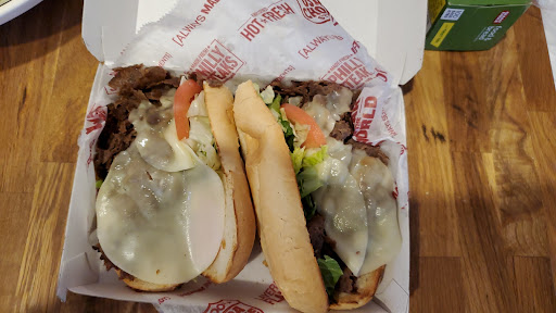 I ordered jalapeno cheesesteak I got no jalapenos in it I wasn't going to make a big deal because it's stupid and the cheesesteaks are really good but every time I go to any mall and there's a Charlie's the person out holding the samples is doing disgusting things like pick their nose and sneeze and 1 times a person was even eaten the samples and then handing them out while they're chewing food!! over all the cheese steaks are awesome but the cleanliness of the employees is...