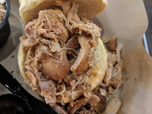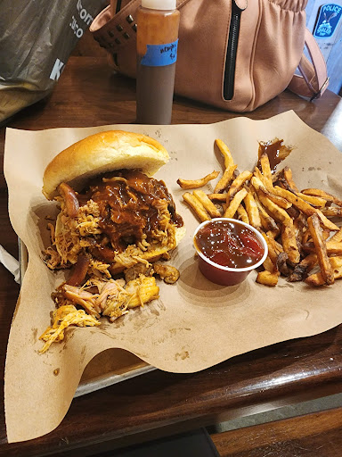 Read moreI had an epiphany today. I do enjoy this establishment very much, from their insanely good BBQ, to the friendly smiling staff, to the speed and efficiency that not even the most sqared away chow line could hope to achieve... but today, as I shoveled a spoonful of mac and cheese, baked beans and cornbread into my yap, and then gnawed off a bite of my baby-back-ribs, I said to myself "Yeah....This is F--king America, baby"....