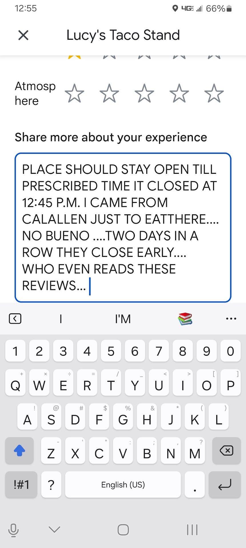 GREAT FOOD, BUT I HAVE ALOT OF ISSUES GETTING THEM TO ANSWER THE PHONE!!!! I NEED TO PLACE PHONE ORDERS BECAUSE I SEND SOMEONE ON A BIKE TO GO PICK UP MY ORDER N IM ALWAYS LEFT NOT KNOWING IF IM GOING TO GET MY ORDER OR IF THEY R OPEN IF MY ORDER IS GONNA BE RIGHT CUZ I DONT GET TO ORDER IT MYSELF! VERY FRUSTRATING! I SUGGEST THEY GET A LANDLINE FOR THE BUSINESS, ITS MORE PROFESSIONAL N WILL CUT DOWN PROBLEMS LIKE THIS ๐ฏ!!! OTHERWISE WEN THEY DO ANSWER, IVE NEVER BEEN...