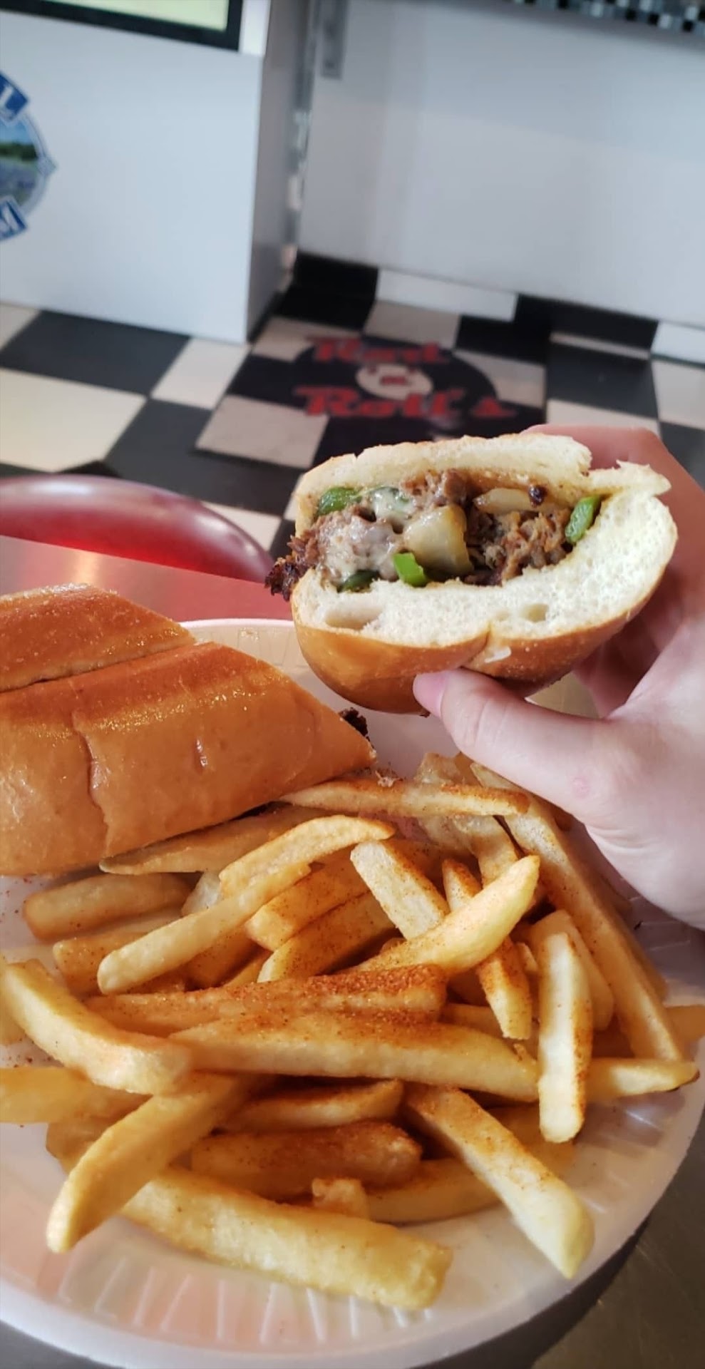 Fun atmosphere, affordable prices, friendly staff, and delicious food. I stopped in today by chance as I was driving through robstown around noon and decided to give this place a try. I really enjoyed the decorations and general atmosphere of the place. The walls are covered in rock&roll memorabilia. The music playing was Elvis, Chuck berry, buddy Holly, and other like that. Felt very much like a classic diner from the 1950s. I especially like the guitar shaped bar in the center. All the staff was so cheerful and friendly, which isn't required, but certainly makes one feel welcome. As I've never been here before I asked the cashier what he suggests and he gave me some general information about the menu and let me know that the Philly cheesesteak sandwich was on special on friday. I chose that with some seasoned fries. Y'all, it was delicious. Too hot to handle at first, I had to let it cool down for a few minutes. The roll was toasted just right. The crust was crisp and the inside soft and warm. The Swiss cheese was melted and so gooey. The peppers and onion were sweet and caramelized. The meat was juicy but not chewy. Though I swear the fries were even better. Thick cut, and seasoned. I didn't even use ketchup because they were so gosh darn tasty. Plus, the ice they use for their drinks is that good crushed ice. All my ice chewers out there know what I mean. That stuff is the best. If I'm ever in robstown around lunchtime again I'll definitely be...