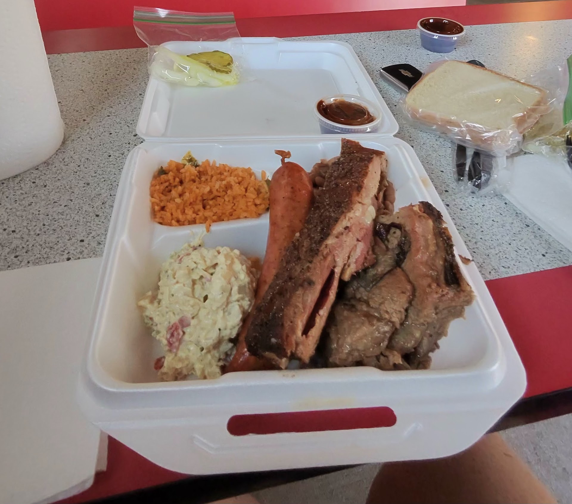 Read moreMy 1st time here and I love the food. The people who work there are very polite and helpful. We sat in ate inside it was hot and small but the food was worth it.Briskets plate was delicious. The brisket had flavor it was just right. Potatoes salad had flavor and different compare to other bbq place which I love. The rice was good I love that it wasn’t dry or watery just perfect. The beans were ok but had flavor. The sausage my son love it he is a picky eater. My picky daughter ate all her food for once’s. Bbq sauce I love that it’s not spicy or sweet just perfect. Everything was nice warm. The drinks nice and cold. The place was clean and unique. Will...