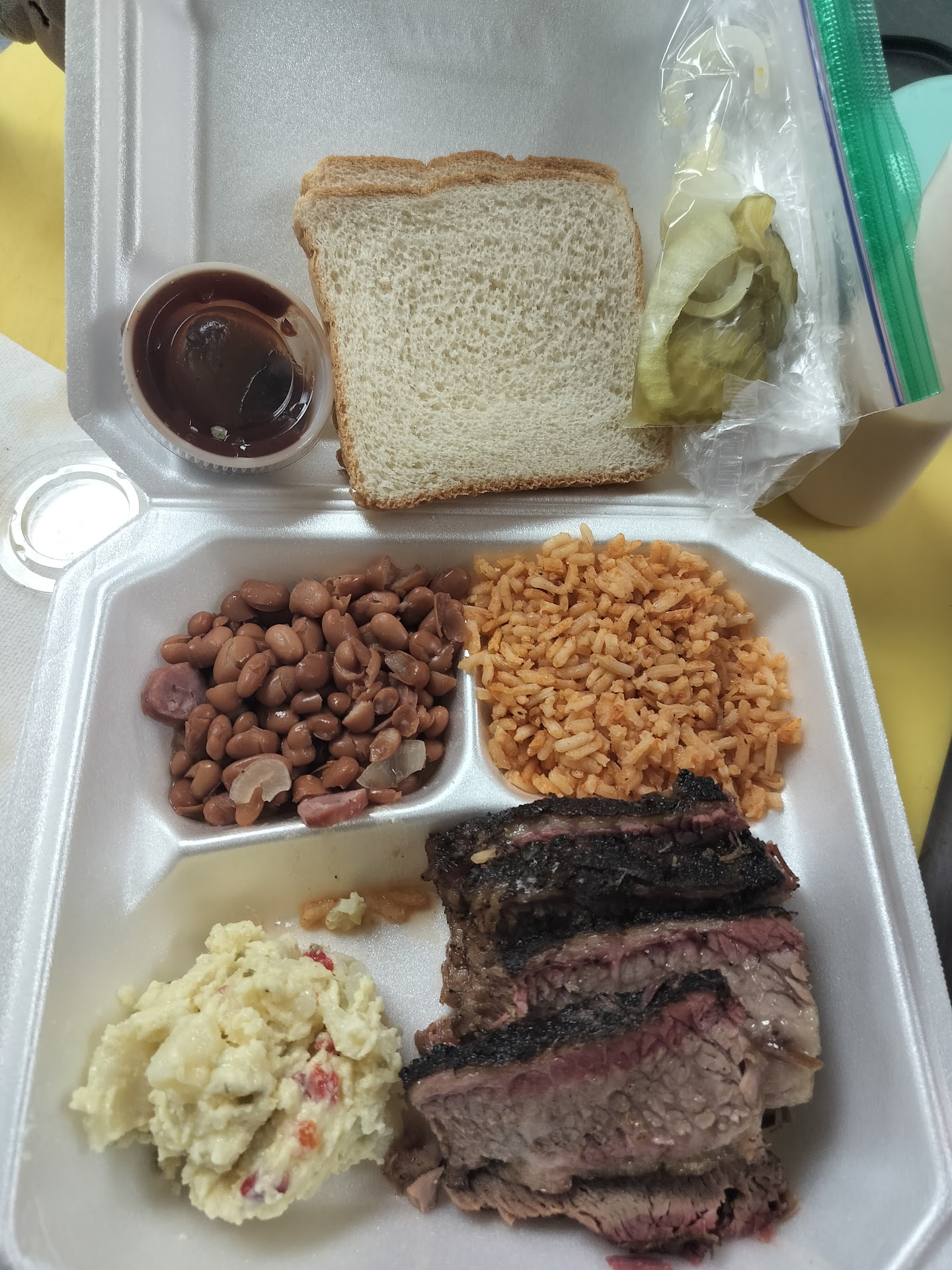 Read moreAll I can say is Wow !!!!!!. That is the most tastiest brisket my husband and myself have ever ever tasted in our whole entire lives. I would just recommend working on the sabor of the rice other than that everything was top-notch!!!!. Definitely be coming to see you again soon where ever yall post up here in corpus!!!!....