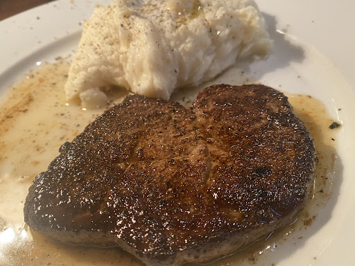 My experience at this establishment was not terrible, but overall left me wanting more which could be a good thing, however in this case it is not. Starting with the good, I was extremely pleased with the service which is the main reason for the stars. Our waitress was very attentive to our table and brought the food out very fast. The burger I ordered tasted good, but it was missing some components. Moving on to the bad, the menu advertised the burger as 1/2 pound which made my eyes light up. I am a huge burger guy and consume probably 5 or more weekly. I have reviewed hundreds of restaurants and know what a half a pound of meat looks like because I have experience. Whenever I order a burger that big, I notice how huge it is and it ALWAYS fills me up. Unfortunately this was not a half a pound of meat. I am not sure if this was intentional, or if they accidentally served a smaller burger but I was still hungry after eating it not just because it was not a full half pound, but there were just not enough fries with it. Fries are pretty cheap, and I am trying to get full so if you are going to short on the burger, please please please give me a pile of fries with it. As a customer I am telling you those extra two seconds taken to put an extra scoop of fries on my plate could turn a meal from bad to good. This was more like a small puddle and not really enough. Mainly, the burger needed to be bigger and it is not just this restaurant that is guilty of this, I have been finding at various places menus state that a serving is X amount of food when it is really much less. I understand times are tough, and the cost of food went up but please do not say 1/2 lb of meat if it is not that. I will reiterate that I probably consume more burgers than I do any other food so I know what I was holding was not 1/2 a pound. Because I was still quite hungry, my friend let me have some of his mashed potatoes which were completely tasteless. They literally had no taste, seasoning or any kind of salt. I can add salt myself but really? It is mashed potatoes at a steakhouse. They should have that in the bag. Good job on the service as the waitress was flawless, and good job as the burger did TASTE good, I would have liked more of it and more fries. Not entirely sure if I would come back, I would want to talk to the manager or someone regarding the portions because I needed more food after leaving. I was out with some friends which is why I did not send anything back or make a scene; plus I noticed the establishment was quite busy. For next time, if there is one, I need to go over what I will actually be receiving on the menu before I order it because now I am...