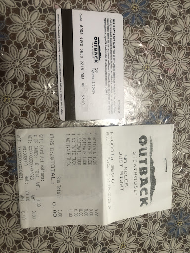 Read moreLet me say this I was accommodated with Outback gift cards by Katherine from the Edgewater location which I really appreciated.