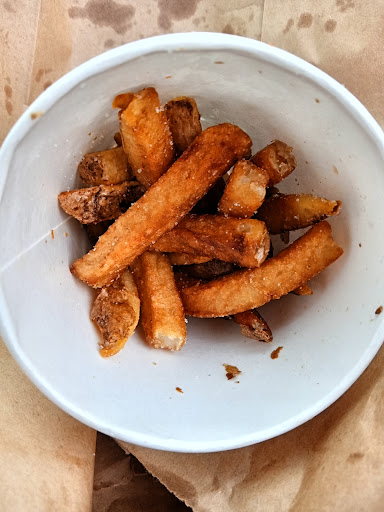 My food was done quickly and Matt, who cooked my food, was really pleasant and hooked me up with some Cajun spicy to try with my fries (hadn’t had it before so I was glad to take the suggestions). My burger was fresh and on point - the fries were solid, though I could not finish them all cause I was pretty stuffed with the burger....