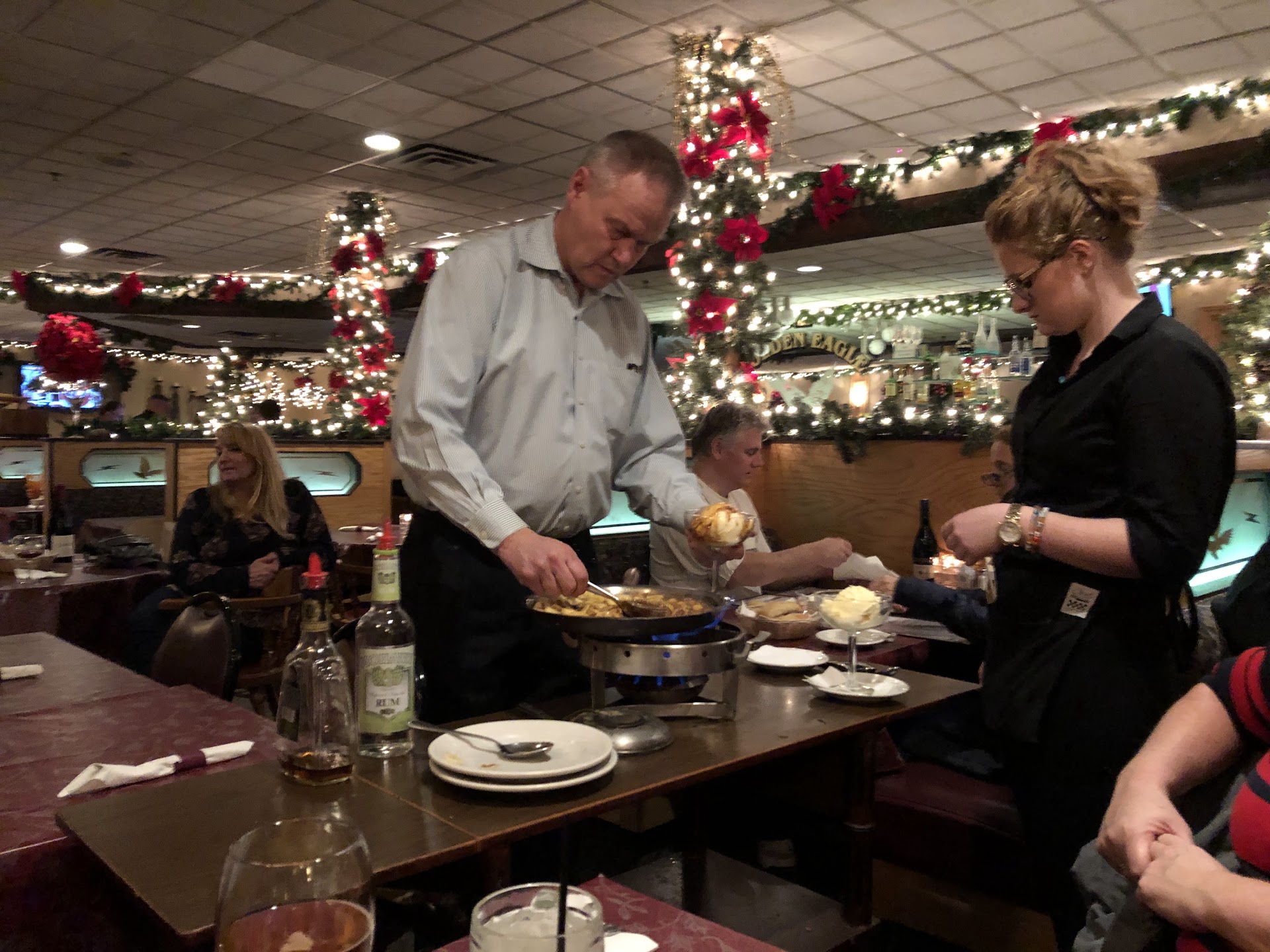 Second, the cost. The buffet was $19 or $20 per person plus the cost of drinks. Again, this seemed a bit high to me, but perhaps that is the going fare. The menu consisted of Chicken Marsala, Swedish meatballs, mostaccioli, potatoes and a vegetable, with salad and rolls. I would describe the food as adequate, but nothing special. Hence, my food rating of only 3 stars.