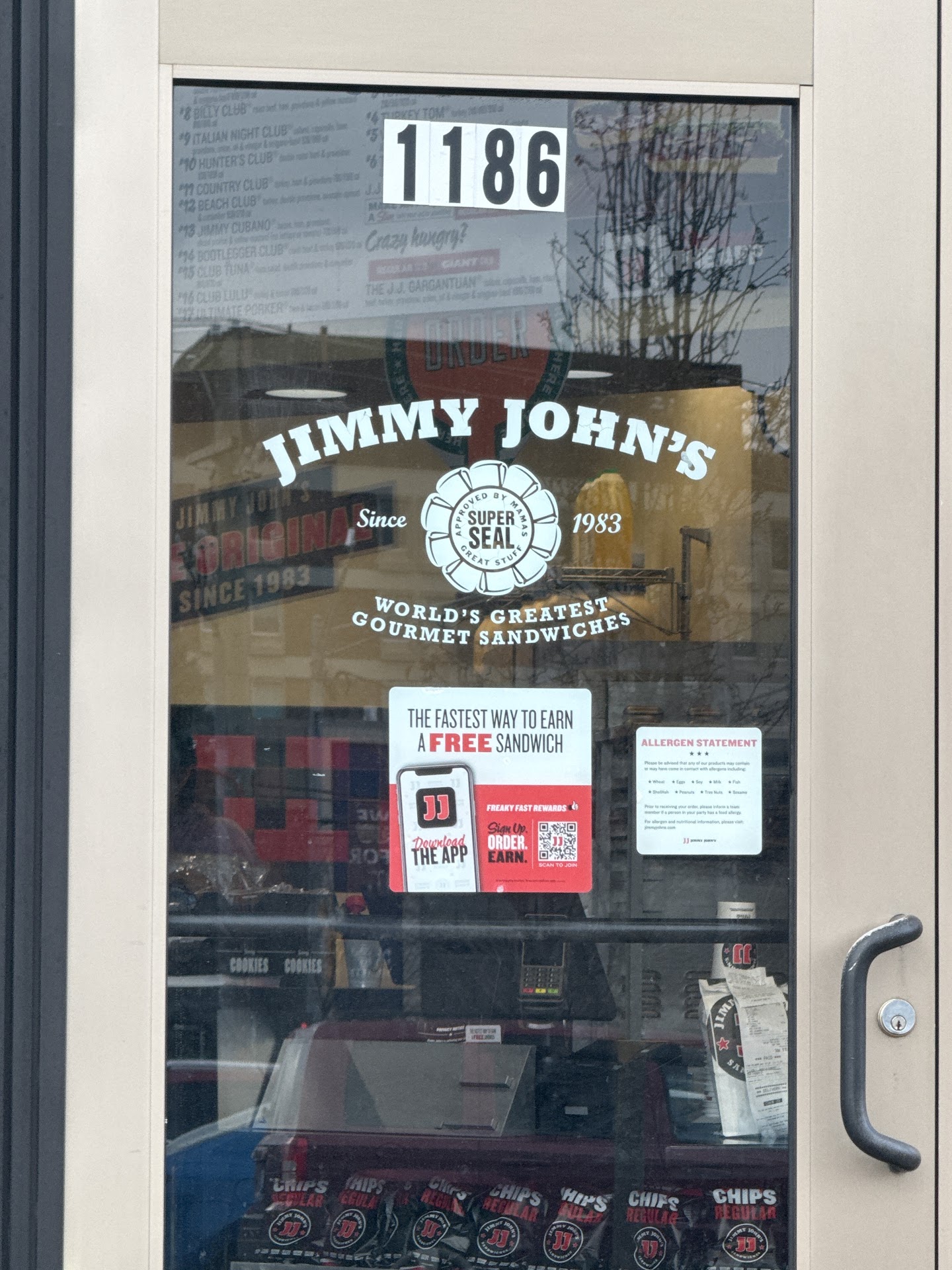 Read moreJust got out of the ER, and all I wanted was a sandwich. I sat down while my husband ordered our food, and the gentleman, name started with a D, taking our order seemed like he had never worked in food service. Didn’t ask if we wanted to add anything, wasn’t honest about what sauces were available, and tried to ring us out before we were done ordering. The music was horrific, playing multiple heavy metal songs all at once. When we asked if it could be changed, they blamed it on the neighboring stores WiFi. My sandwich was made wrong, and they charged us for a combo but didnt give us the food. I’ve been a Jimmy John’s customer for years and this is the first time I’ve left before my food was...