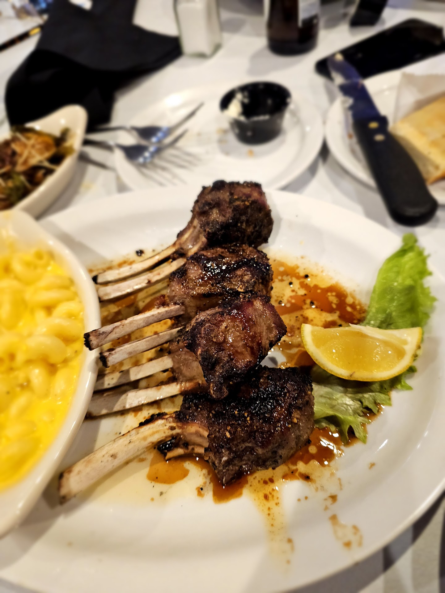 To round out our starter course, we added a house salad to our meal. While it might seem like a simple addition, this salad played an important role in our dining experience, providing a fresh, crisp contrast to the rich appetizers. Little did we know at the time, but this salad would contribute to us becoming completely satisfied before our main courses even arrived. For our entrees, I selected the center-cut pork chops served with cinnamon apples. The presentation was beautiful, and I could tell immediately that this was going to be something special. The pork chops were perfectly prepared, and the cinnamon apples provided a wonderful sweet complement to the savory meat. However, here's where our appetizer success became both a blessing and a challenge - we were so thoroughly satisfied by the delicious starters that we couldn't do justice to our main courses during our visit. I'm happy to report, though, that the pork chops were absolutely magnificent when I enjoyed them the following day. The flavors had melded beautifully overnight, and the quality of the preparation was evident even as leftovers. My husband chose the ribs, and while we couldn't finish them during our dinner, they certainly didn't go to waste. In fact, they provided him with an unexpected early morning treat. When he woke up at 5 AM and couldn't get back to sleep, he found himself drawn to those ribs and proceeded to demolish every single bone. I have to admit, I was slightly disappointed the next morning when I discovered nothing but clean bones at the top of the trash - I had been looking forward to trying them myself! This speaks volumes about how delicious they must have been.
