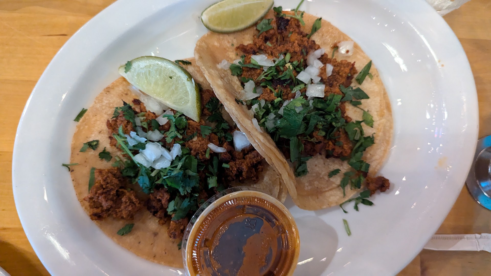 For starters on the food, the salsa that came with the chips had a nice, savory tomato flavor. It was a nice little appetizer before the main course. I ordered the birria tacos for lunch.