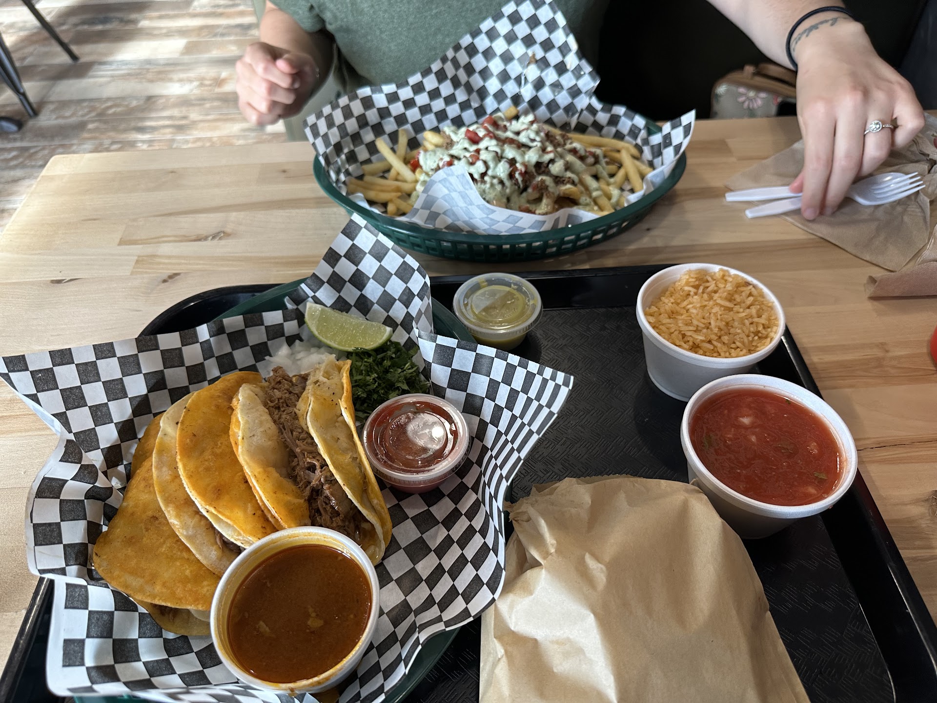 Itās like itās 10pm and Iām seeing the food trucks on the side of the road, except they have some amazingly spicy salsas, and a great avocado sauce! Comfy seats clean environment and to add some great service.