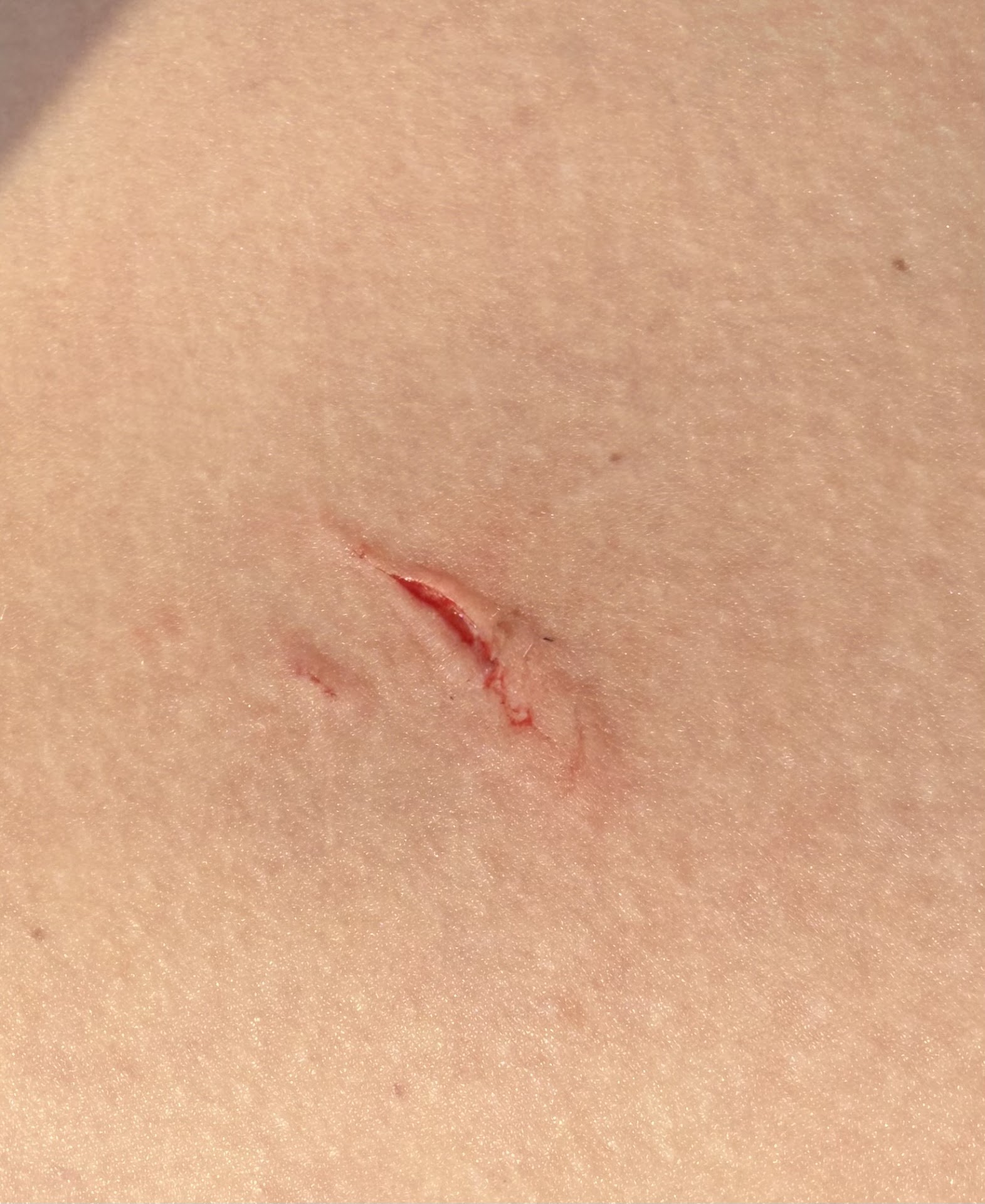 Now obviously the acutal cut on her leg isn’t anything to run to the hospital for but the fact of the matter is this establishment needs to either coach, write-up, or even terminate some people. The place looks brand new on the inside but don’t be fooled. The umbrellas are held together by tape, with dirty silverware, and rude/inconsiderate staff.
