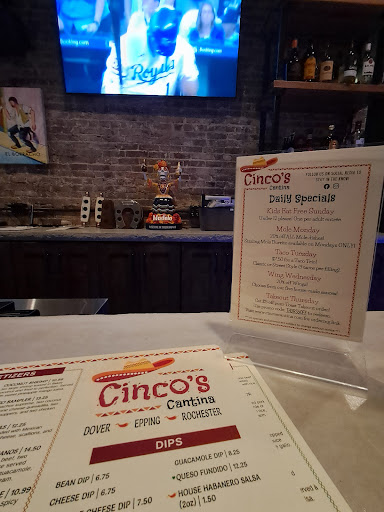 Read moreMy boyfriend and I tried Cinco's for the first time last night. We were promptly greeted and sat. The dining area was clean, the lighting was soft and the music was at a good volume where you could hear it but still be able to hear a fellow diner.