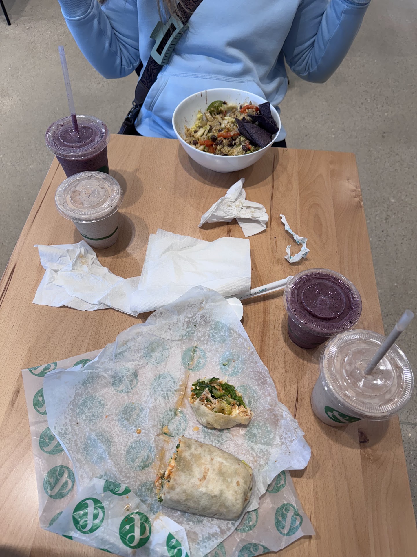 Read moreI went for lunch and waited for about 45 minutes through the line and then to get my food. I only ordered an acai bowl and smoothie, and once I finally got in line to order, I was told to order those items at the front register. It still took me another 10 minutes to get to the register in that line. Once I ordered my acai bowl and smoothie, it took 20 minutes to make! The restaurant was very loud, so I wouldn't recommend this place for a quiet and calm place to relax. The workers seemed overwhelmed. The acai bowl was good once I got it, but it wasn't as good as other acai bowls that I've had in town. The smoothie was thinner/runnier than I expected but tasted good. I hope they learn to accommodate the lunch rush because I'm willing to try it again, but not for that...
