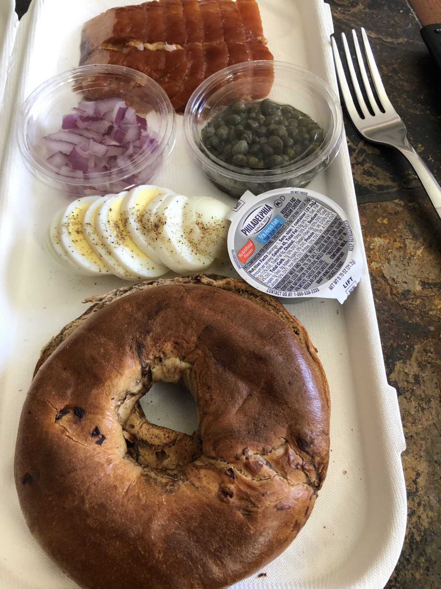 Read morePicked up a yummy to go breakfast from Cork&Kale today. We had the salmon plater and it was good!! I thought the salmon was going to be cold smoked salmon but it was the cooked smoked salmon - and it was still quite good. The platter included a toasted bagel, cream cheese, red onion, capers and a hard boiled egg. Additionally, they will be getting an espresso machine soon to serve lattes. Close walk from the clinic!