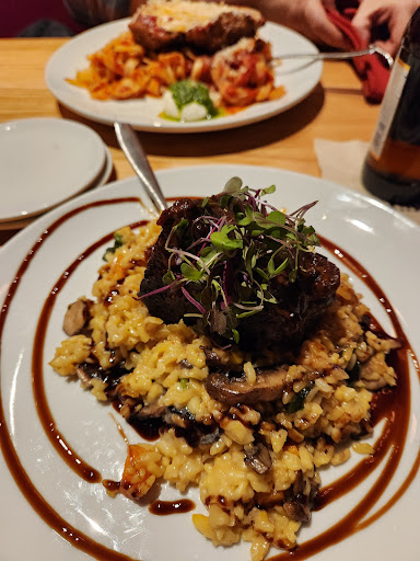 Hi, I decided to give a review of our 1st experience with your "Italian Restaurant." When you 1st come into a fairly large restaurant. You see a huge bar. But here is where or why the negative review. 1st, there should be a lot more booths with the Italian Feel and Flair. Using Round Tables as well. Since you have a small amount of booths. Everything else is regular tables. High Tables that both of these are not comfortable. Everything is lit up so bright as if it were a Christmas Tree with Bright White Lights. Not at all an Italian feel to the restaurant. And then you have today's kind of music blearing out of the speakers. Whenever you go to a "Real" Italian Restaurant. It's comfortable, relaxing with an enormous feel like you're in Italy. The music is low-key, comfortable seating. Menu should actually have pictures to show the food you are ordering. The food is expensive, so your clientele deserves that feel, comfort, and everything I spoke of. The service and waitress was excellent. I have the Chicken Parmigiano, which was very good. The bread you put out first was good, but 2 pieces for 2 people is lacking. And you should offer garlic butter. Not everyone cares for just oil. My lady had the Chicken Marsala. And tryst me it is her Favorite Dish. But you failed miserable. This wasn't Chicken Marsala. This was the worst CM ever!! It lacked the Marsala Wine. You couldn't taste it. And it was loaded with too much butter. That you easily see it on the noodles. You put Onions & Slightly undercooked Bacon. That we never seen in a CM. Olive Garden has a better CM than what you put out. And they aren't an Authentic Italian Restaurant. You are supposed to be. Hopefully, you take our advice and perhaps make some changes as suggested to be that "Italian Restaurant" we had expected. It's a restaurant that's like a sports bar that serves Italian like food. We know it might sound harsh. But you needed to know and want you to succeed here in Rochester. But the CP was good. Let's see what you and the owners do with my feedback. And your potential future customers can expext. Thank you, God Bless. And have a Merry Christmas and a...