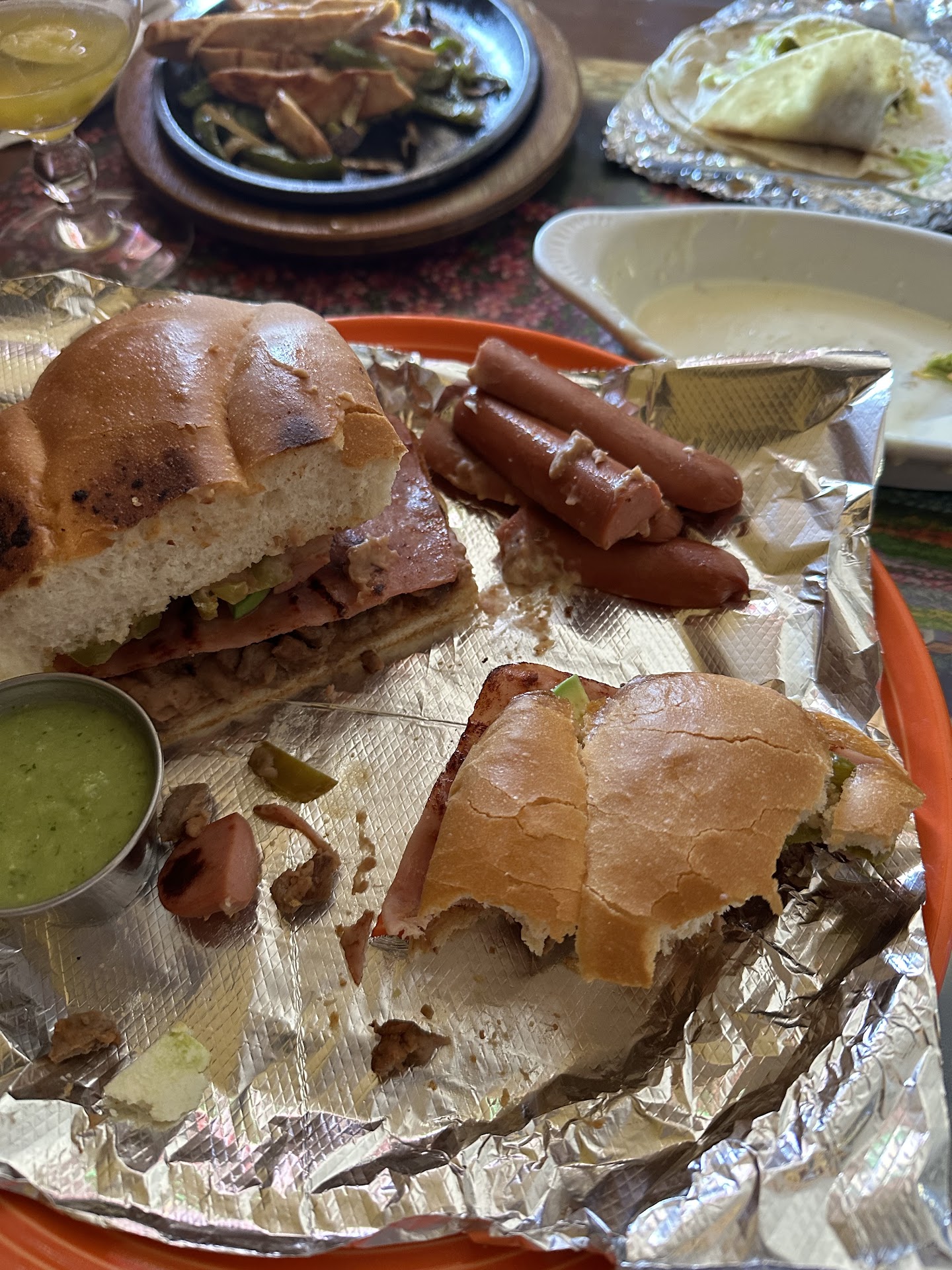 Read moreCame to this restaurant as a first-timer and if I could put no stars for the food I would. First, the salsa they bring out with the chips tastes like tomato sauce with the slightest taste of salsa (thought this was a Mexican food joint lol). Second, I ordered a Steak Torta that says it comes with Steak and sausage and as you can see from this photo it came out with what looks to be sliced in half HOT DOGS?!?! Not only that but instead of a cheese slice they give you two cuts of either some block cheese? Tell me this makes sense. I took maybe 2 bites of the Torta (without the hotdogs) and proceeded to ask for a discount or even the meal to be taken off or exchanged for something not so unappealing to eat. The server took $5 off the tab which is still appreciated, but then for number three reasoning my girlfriends chicken fajitas looked and tasted like pre-cooked chicken breast strips out of the great value bag at Walmart. As we got to the checkout we asked for management to hopefully speak to someone a little more understanding that neither me or my girlfriend ate our food and we got told the hot dogs are sausage (which any human who has grown up eating hot dogs and Mac knows WHAT A DAMN HOT DOG IS) and that he already added a $5 discount. Moral of the story we still had to pay $60 to a restaurant that if I wanted to I could’ve gone to Walmart and made the exact same food for cheaper. Never...