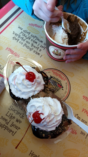 Read moreI went to the north Flapdoodles yesterday with my sister. We were wearing our face masks under our noses and as we were ordering, another worker interrupted very rudely, shouting at us that we must wear our face mask over our nose or we would have to leave. We slipped them back over our noses and tried to continue ordering while she continued hollering in a rage as though we hadn't complied. The whole place, people eating, and those in the line behind us watched in stunned silence. She finally went back to work and her mask slipped below her nose. (No, we didn't bring it to her attention). When I left, she rudely repeated her command, for next time. Sadly, there won't be a next time, for me, my sister, and two others in line who voiced their disgust once outside. In all her noise, my server got one of my ice cream flavors wrong. I didn't notice until I was out the door and had no desire to return and make it right. I have seen this girl be rude before. Another customer told us they saw her get angry at a customer for "messing up" their stack of tee shirts while looking for the correct size. She is forceful and aggressive and has very poor customer service, definitely not a good fit for a "happy" ice cream shop. My only regret is that I didn't walked out the door in the middle of my order. At least four people who witnessed this will not be back. I can find good ice cream at other places that know what good customer service is. It was a...
