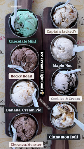 Read moreWe were in town for a dance competition and ice cream is the best way to celebrate freshly won awards or medals but, my daughter has an insanely severe peanut allergy so when I saw the sign for a local ice cream shop I assumed she couldn’t go, she can almost never go to ice cream shops. I gave them a call and could tell it was a teenager or very young adult who answered and I explained our situation and said, I’m just wondering if you have safe options or if you think we’d be better off skipping it? I would not have been upset at all had she said skip and expected her too and she said they could scoop with freshly sanitized scoops in the back from unopened containers. We went and the place was staffed entirely by teenagers and young adults and they were so prompt, patient, and helpful. A young man scooped my daughters and he didn’t seem inconvenienced or annoyed at all, even though they were busy. I thanked him so many times but it was almost as if he didn’t even understand why because to him it was just like scooping any other cone and that’s not something we ever experience. My daughter rarely gets to have normal laid back experiences celebrating birthdays, or awards, or wins and so it is so special to us all when she can just be a normal kid in an ice cream shop. Thank you to each and every employee for their kindness, patients, and understanding and thank you for helping keep my daughter safe. I know allergies are so prevalent and scooping this way isn’t convenient but that cone is so special to her because she’s so used to missing out. We appreciate you all. Also thank you to whoever designed the tables, we were all thoroughly entertained by the jokes/puns...