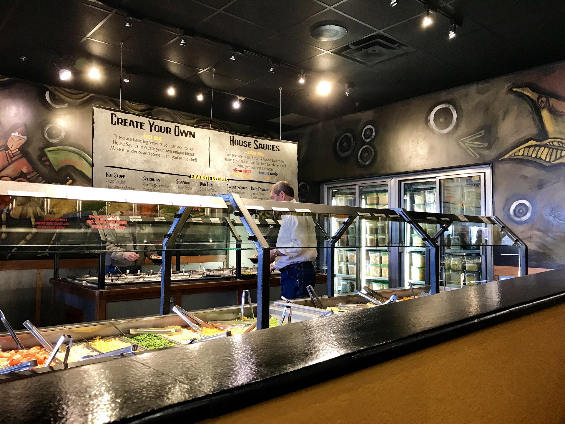 Read moreVery very small and crowded. They only have one grill. Very small limited option of meats, veggies, noodles, and sauces. The waiter was quite rude. This place is very very overpriced. It was $80 for 4 "adults", not to mention that one of them was a teenage girl who didn't even barely eat. Everything was an extra upcharge. The drinks were very gross and watered down. I had a raspberry tea no ice, there was still no flavor in it. Switched drink flavors a few times and everything is this way. With the very light flavor of what you got as a drink. It was like they were adding water to all of them to save money. The line was ridiculously long for the grill and they lost track of whose food was whose quite frequently. The tall blonde gal that made my food was also making food for other people. I watched her crack open eggs and drop the shell into the person's food. And then she moved on to my dish which was the next one. (Not cleaning utensils between dishes.) I ended up with egg which I'm allergic to in my dish. Along with eggshell, large chunks of it. As well as ham and cheese which I didn't do either of those because I'm also lactose intolerant and vegetarian. I pointed these facts out to the waiter and he just brushed it off and walked away. No apologies. No discounts. No coupons. Nothing. In fact his attitude got even worse from there on. He wouldn't even come over to the table to refill our drinks. I suggest boycotting this business. It's...