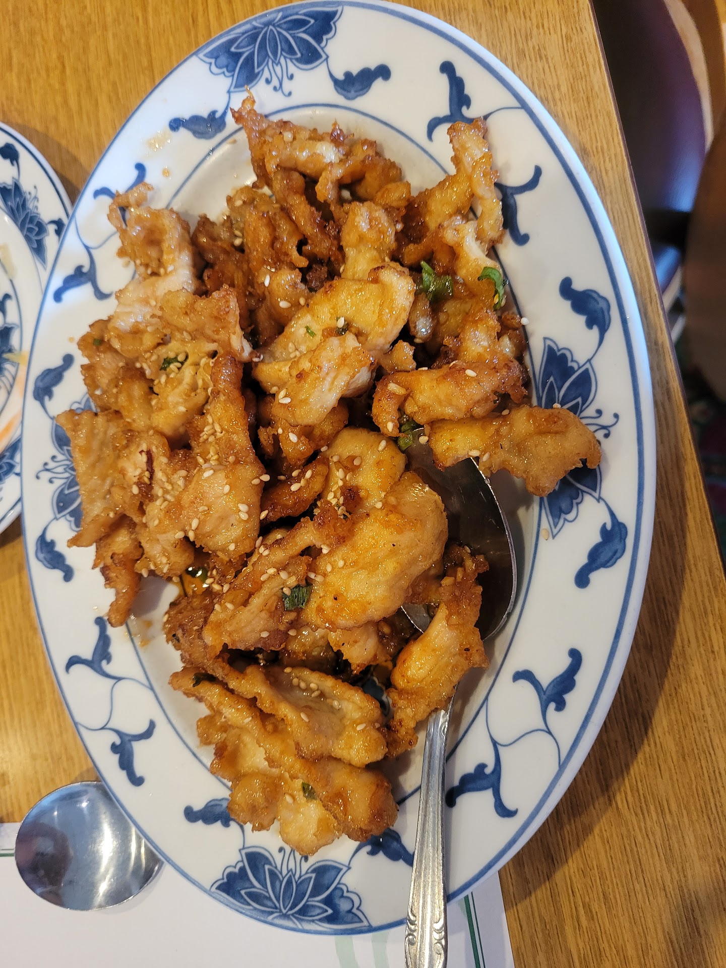 First time there the other day for lunch. Had pork egg rolls, crab rangoon, and pork fried rice. Eggs rolls were nice and crispy, rangoon had plenty of cream cheese filling, was light and crispy. Voluminous bowl of fried rice; nice light smoky flavor like it should be, rice was light and not clumpy; just the right amount of onion bits and peas, and nice big chunks of seasoned pork. Waitress was attentive and friendly, and a nice clean airy atmosphere. We'll be going back.