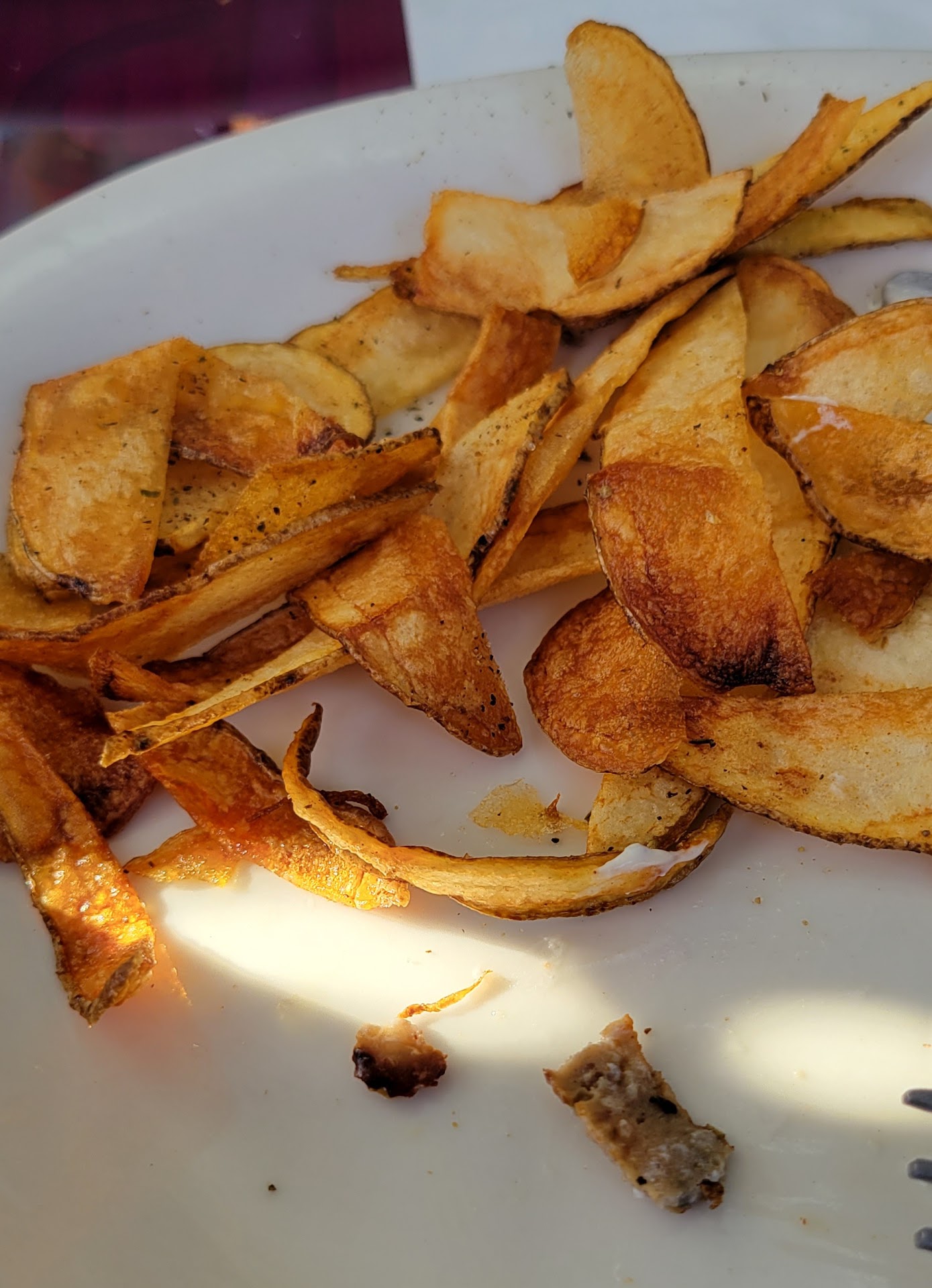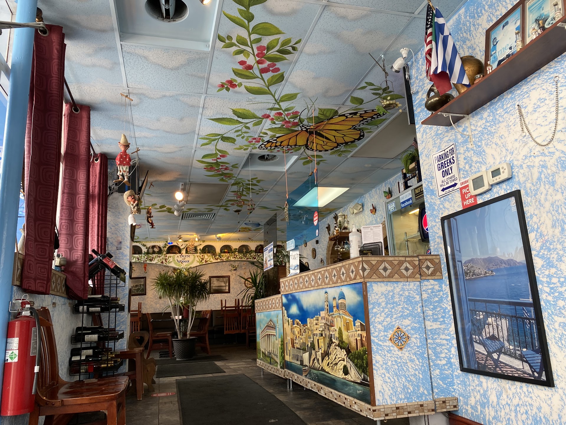Unassuming local cafe serving authentic Greek cuisine. The front was getting a much needed paint job trimming the white columns and brightening up the exterior and the adjoining enclosed patio. Interior was adorned with traditional paintings, framed art, imported memorabilia, trinkets, racks of wine and even painted ceiling tiles. Limited seating inside and a larger outdoor dining area with a lattice covering overhead. Drinks were promptly brought out with a basket of pita chips and tzatziki, which is a cucumber-yogurt sauce. Love the crisp chips and the creamy sauce which goes so well with so much. Our main entree was the Greek Special with one chicken gyro and one regular gyro. Your choice of French fries, onion rings, or rice. Both gyros came nicely filled, one with chunks of grilled chicken and the other with thin strips of beef and lamb, fresh lettuce, chopped tomatoes and red onions wrapped in soft pita bread. Our side choice was the not-so-original French fries that came as thin sliced strips of potatoes fried and lightly seasoned. Enjoyed every authentic bite, some simply as is and others slathered in yet more tzatziki. Food was good, service friendly and...