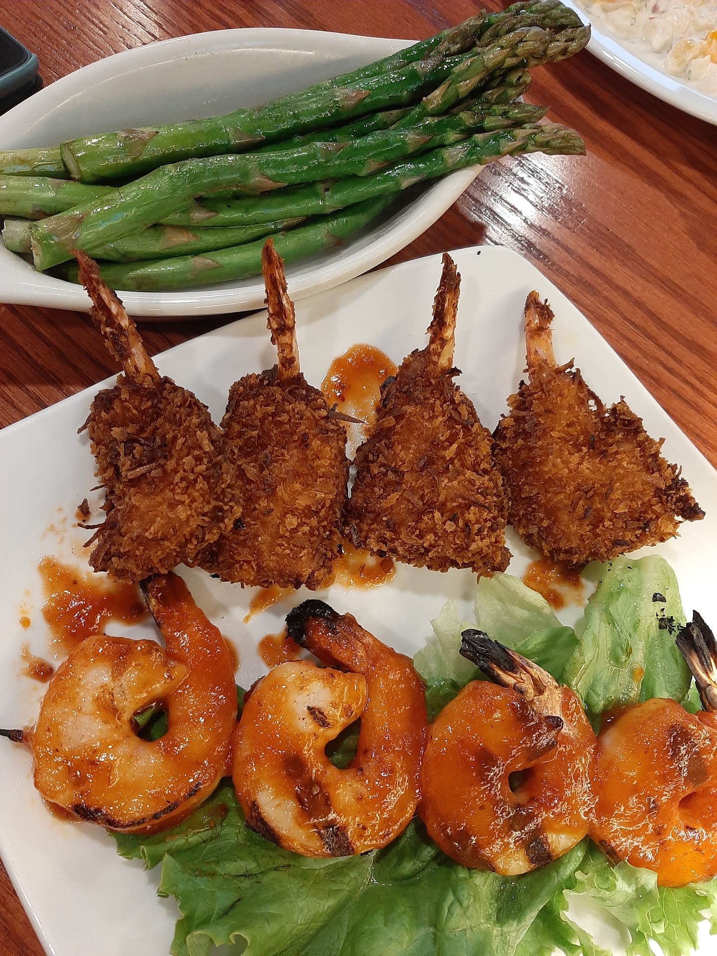 Ā Ā Ā Read moreWhat a gem! I stopped here while in Rochester for some Mayo appointments. I had read that they had an endless shrimp night that was highly reviewed so I figured I would give it a try. I am so glad I did! Being a solo diner I sat at a 4 top table (they didnt have any two tops), I always worry that a server may be annoyed that I take up a whole table instead of sitting at the bar (I am 7 years sober) but the waitress came over right away with a very friendly enthusiastic hello and let me know the specials and got my drink order. I ordered the endless shrimp with asparagus. I chose the mango bbq skewers and coconut shrimp for my first two orders and it came with a trip to the soup and salad bar. They have a faaaabulous salad bar! The beets are amazing and they have some of the best potato salad and coleslaw I have ever found on a salad bar. The lettuce and salad toppings were all very fresh and though I didnt check out the soup I am sure it was likely great as well. 10/10 salad bar. My shrimp and asparagus came out hot and delicious! The mango bbq shrimp was cooked perfect with a delicious grill flavor and that mango sauce was AWESOME. The coconut shrimp was perfectly crispy with that slight sweet from the coconut. I only wished it had come with a dipping sauce but I asked my server for an additional side of the mango sauce and voila!, perfect! Lastly, my asparagus was tender and perfectly seasoned. 10/10 fast friendly service, spectacular food, will recommend...