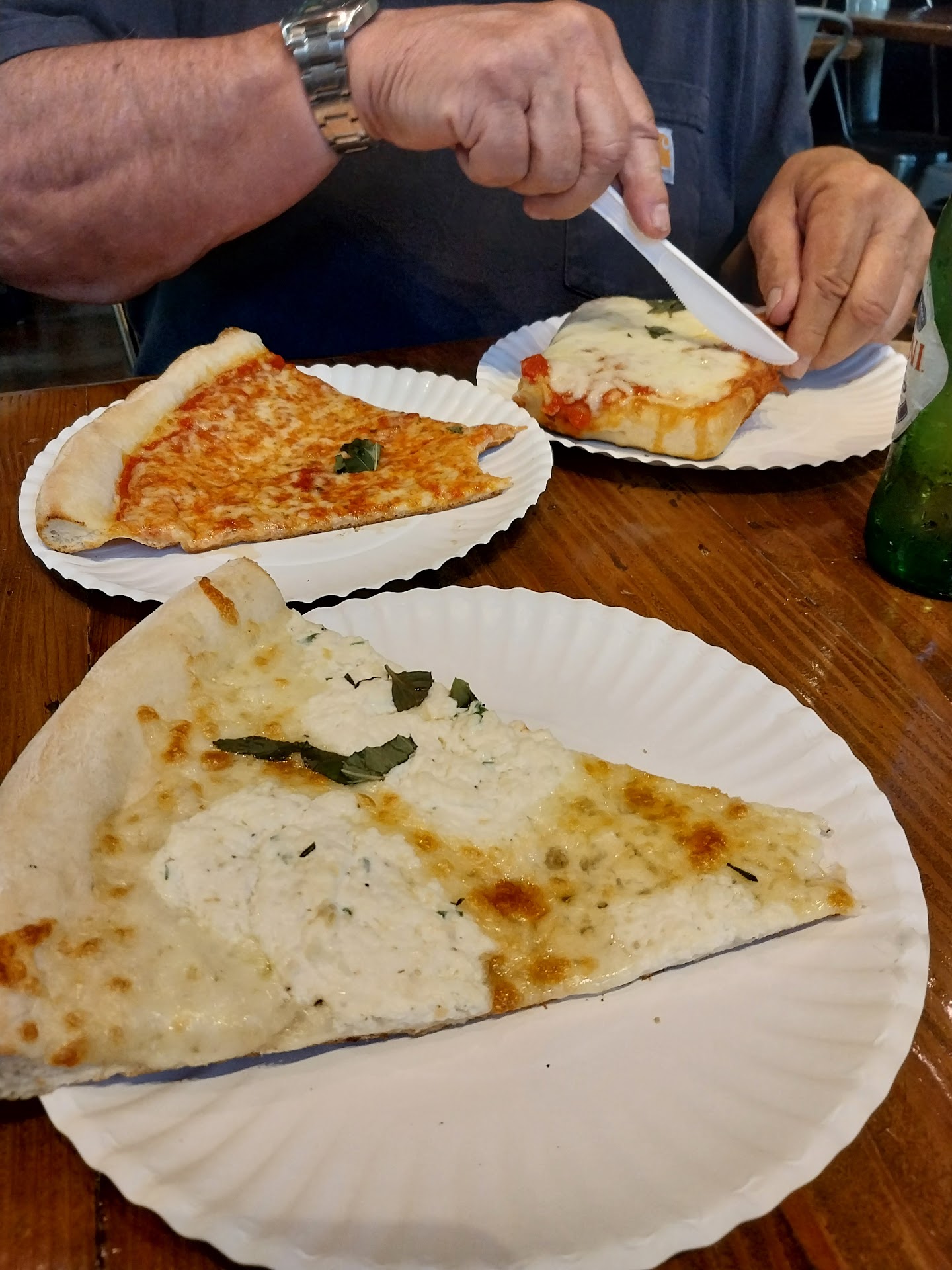 As for the New York style pizza, it's pretty good. I'm not normally a fan of thin crust pizzas like New York style (I'm a Chicago deep-dish person), but these guys make sure the slices are served hot and crispy, not room-temperature and soggy. One of the guys working at their Thursdays on First booth told me, "We don't serve soggy pizza. Ever." He wasn't kidding. They will always heat up your slice of pizza to crisp and hot, which takes extra time but in my view is worth it.
