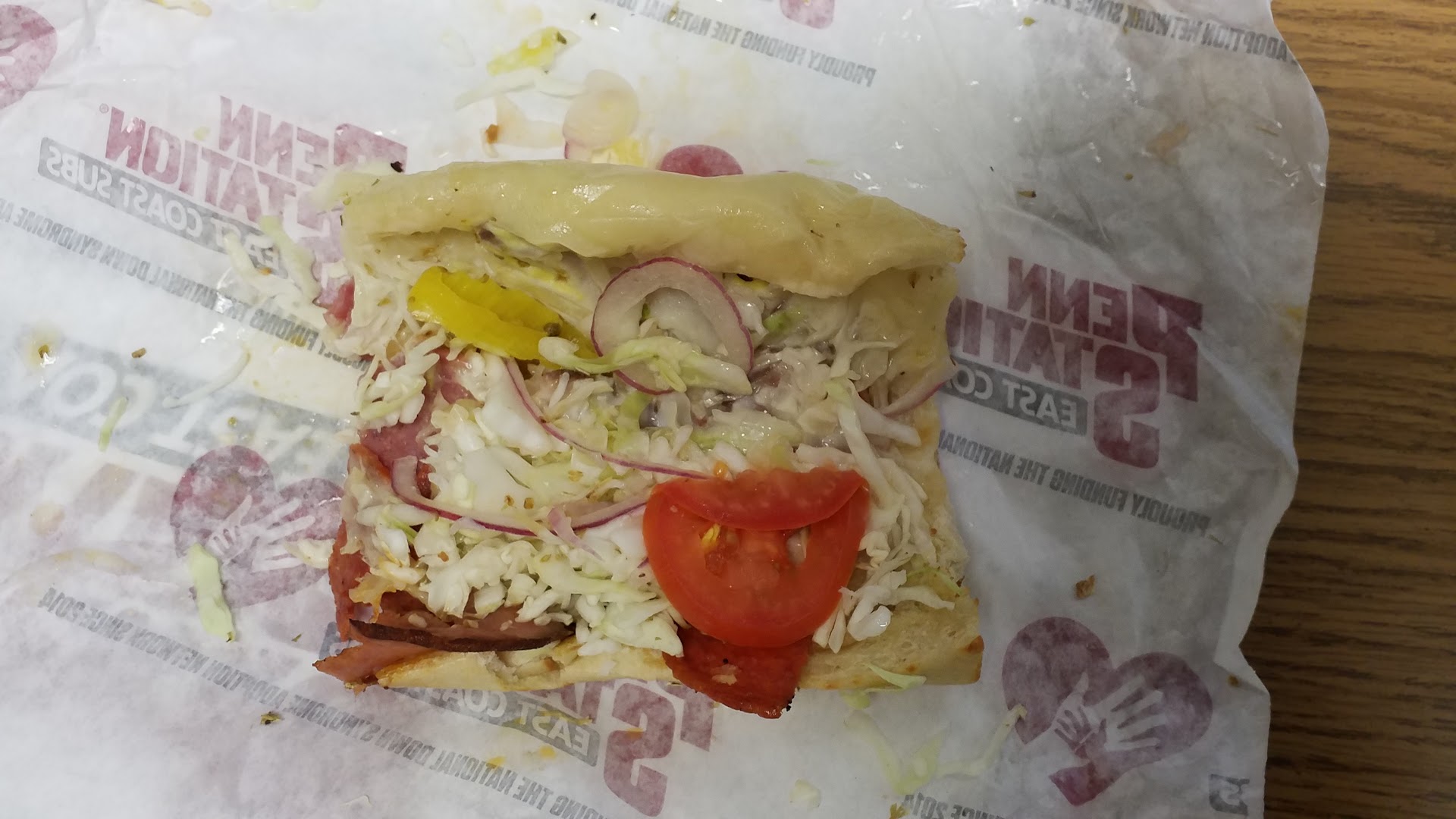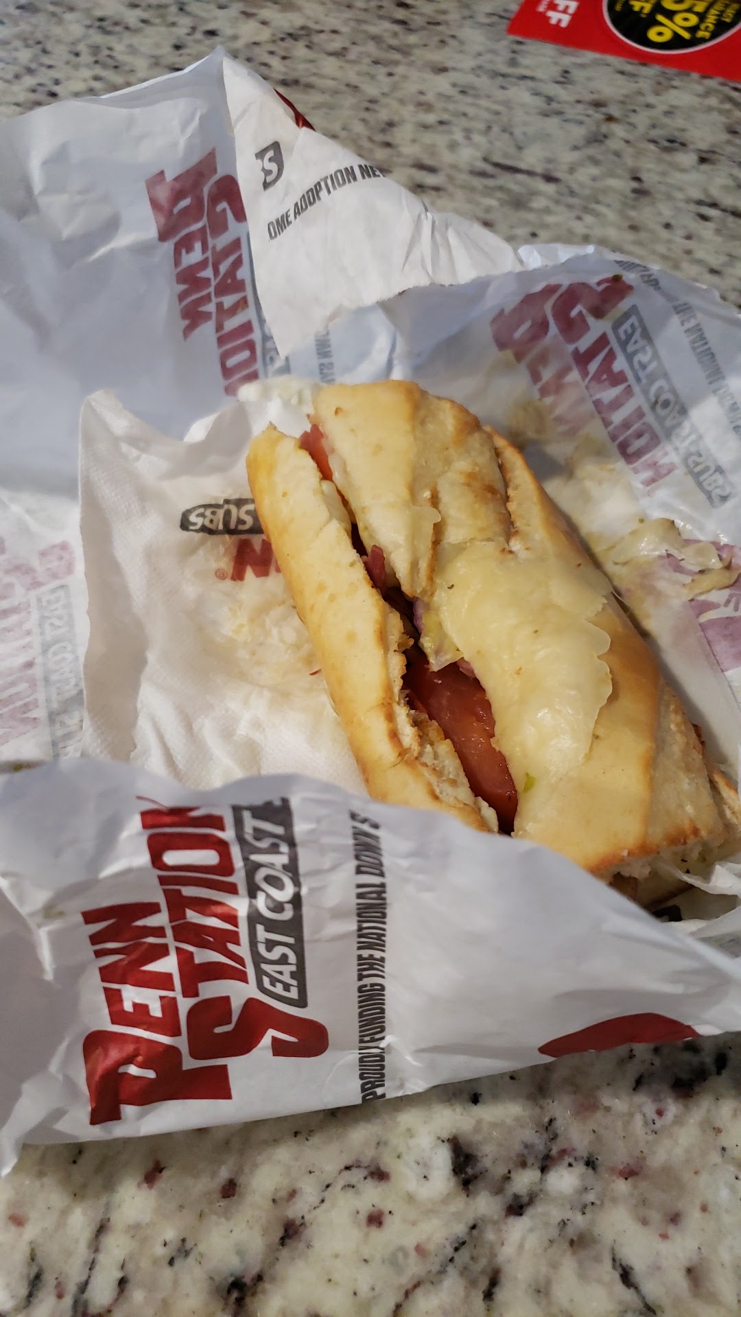In my opinion this experience has been very poor for any penn station. I ordered online, which was fast and easy but from the moment I walked in I noticed an array of problems. First, I was not acknowledged for arriving, nor asked if I needed help. I was there to pick up my online order, no one even bothered to ask me. I stood where the online order pick ups were to stand, but again Ignored. I was forced to wait for the line to be taken care of before anyone even asked me anything, so what was the point of online ordering? I noticed a sandwich was on top of the griller and assumed it was mine. It was probably placed on top of the grilling unit to keep it warm? After waiting for everyone else in front of me to acquire their food I finally approached the check out station to ask about my online purchase. Red flag number two, the young girl who was far too timid to even speak up was ACTIVELY BLEEDING on her hands. I eyed her hands and gave her a look of disapproval. The Store manager was running around and didn't have time to speak to me about the situation. After staring at the lone sandwich longingly for ten minutes and giving them hints of disapproval I finally asked for my sandwich, to which they tried to find it. The workers obviously noticed I was standing there for far longer than average and immediately realized what sandwich they were looking for and they finally handed it over. The sandwich was not hot anymore, resting it atop that griller did not do it any good. Red flag number 3: The other worker who was making sandwiches behind the counter (and found my sandwich) WAS NOT WEARING GLOVES. I noticed only the manager and one other worker wearing gloves at the time while the girl making sandwiches and the young men picking up uncooked fries to measure out portion sizes was not. This highly upset me. There were several other complaints from other customers about this establishment at the time of my dining experience, and needless to say, I won't be returning to...