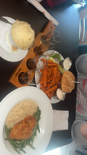 Most of the trouble happened after we were seated once we seated at a high top table. It took about 15 minutes before somebody came over to help we ordered drinks and an appetizer. The appetizer came out about 15 minutes later and then we ordered our entrées. the entrées probably took about 20 25 minutes And both tasted awful. I ordered the Hungarian goulash which the sauce tasted like it came out of a can the beef tips were well overdone and tough and the tortellini had cheese sauce tasted like it came out of a box of macaroni and cheese. The consistency was that bad. when the entrées were delivered, they took our silverware and before I could ask for a new set the server left. This person who dropped off the food was completely different than our wait server.