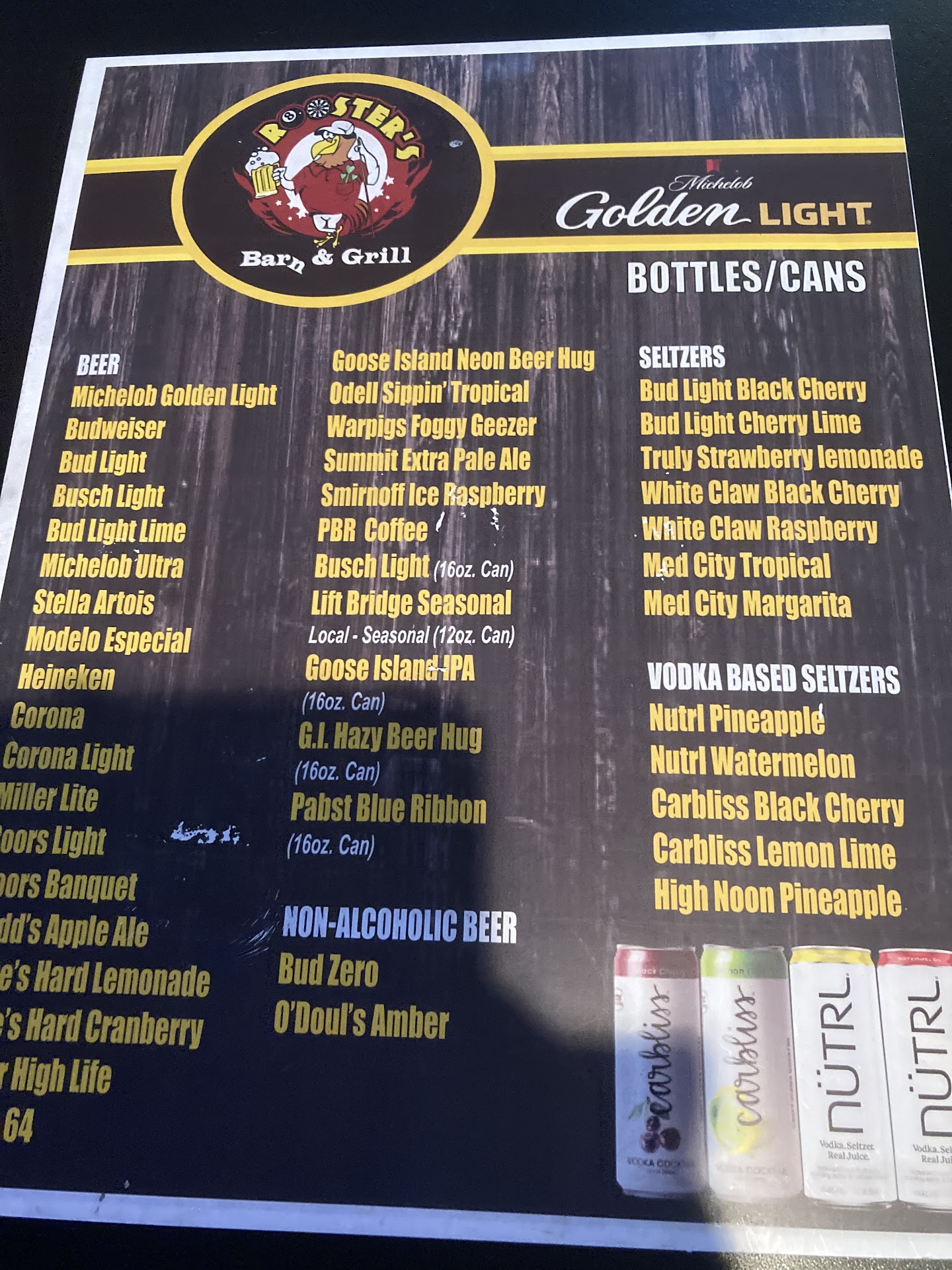 Read moreRooster's has two locations in Rochester, soon to have three. Everytime we go there the food is always great. I've never ordered something that I didn't like. Their breakfast is always good too. One thing I would suggest is their fried chicken. It is one of the best in town. The portions are generous and you won't go home hungry. You usually don't need a reservation, they usually don't take them, except for maybe mother's day and father's day. They do have a full bar with about maybe 10 traps. The wait staff is usually pretty good, haven't had huge problems with them. Or last visit though, one of the bartenders that took our order didn't write it down and had to come back and ask a few different times on what we said, made the order to go when we were eating there, and got part of the order wrong. He looked like he was new and still learning and one of the other bartenders got it corrected for us. I wouldn't stop going there because of that though. However, if you are looking to go there for lunch during the week I would recommend that you have some time. I've been there on two different days for lunch during the week and the food takes a long time to come out. As for a bar restaurant, I feel that is their only downfall. I would definitely go back...