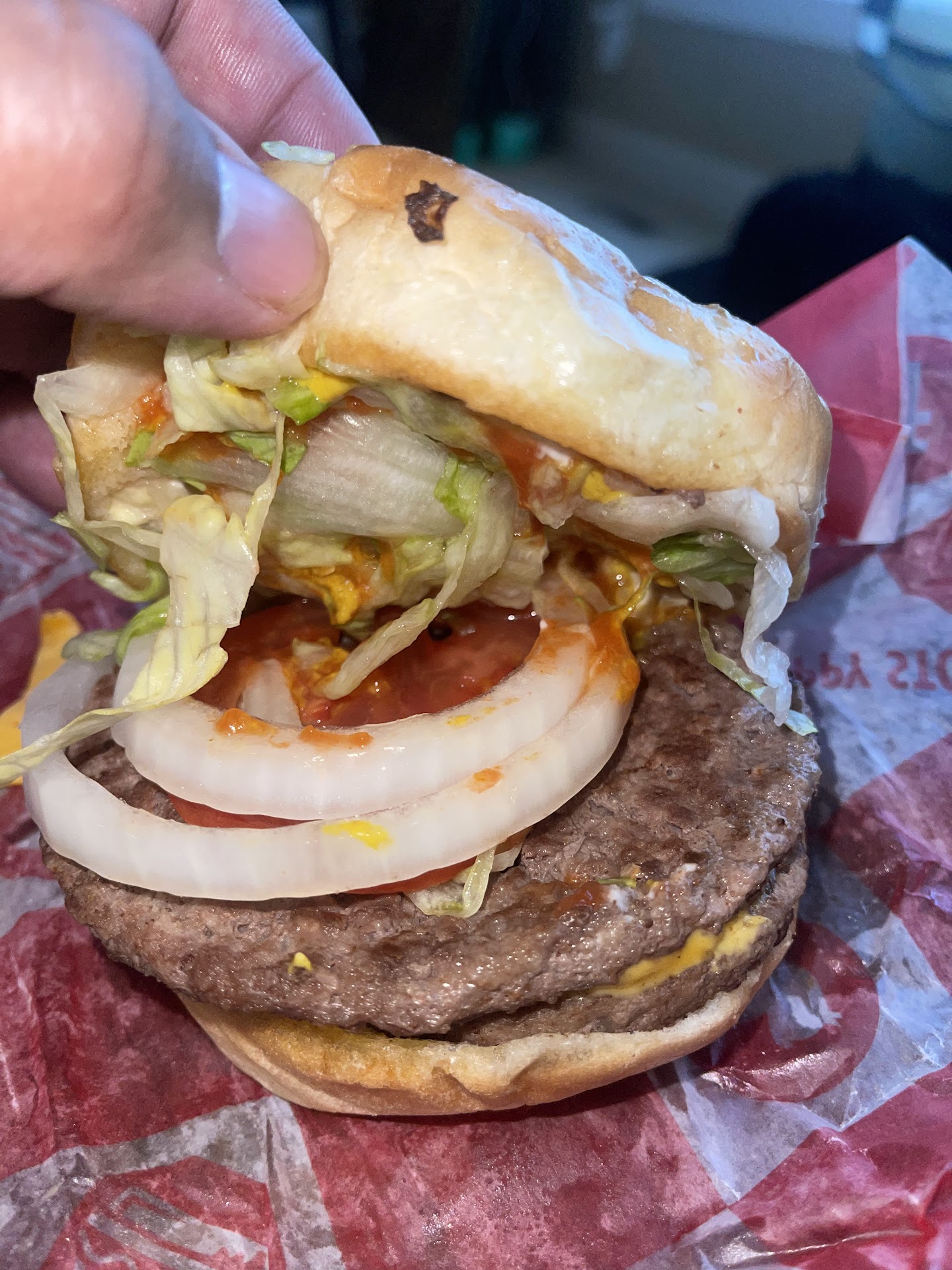 The food took a bit in coming out but everything was hot and fresh. Fries were floppy but salted nicely and the burgers were juicy and tasted great. My wife said hers was very "saucy" but mine was good. The kids loved their #4 combos. The combos were a lot of food.