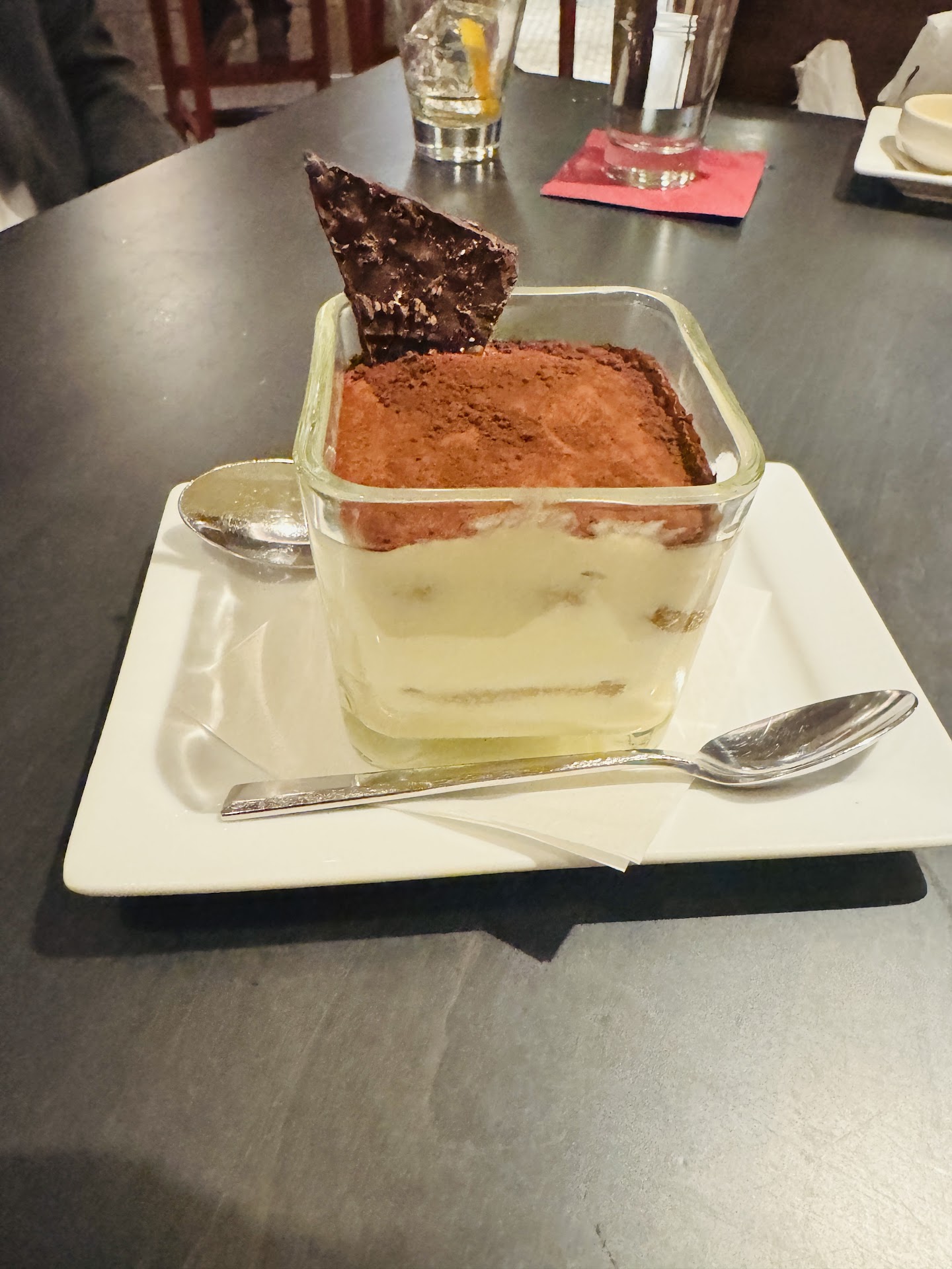 During my most recent visit with my partner, we had another incredible experience: • Warm bread basket: They started us off with warm, fresh bread — simple and delicious. • Fried cheese balls (appetizer): Absolutely amazing! Perfectly seasoned, crispy on the outside, melty on the inside, and paired with their house-made marinara sauce (or “mother sauce”), which was incredibly fresh and flavorful. • Wild Mushroom Risotto (my entrée): To die for! Creamy, loaded with mushrooms, well-seasoned, and a generous portion. • Terza Classic Lasagna with Meatballs (my partner’s entrée): Rich, hearty, and delicious. The lasagna was perfectly layered and flavorful, and the Terza Meatballs were some of the best we’ve had — fresh, well-seasoned, and melt-in-your-mouth good. A must-try for any lasagna lover! • Drinks: We enjoyed a glass of wine and an Old Fashioned — both well crafted and a great pairing with our meal. • Dessert: We shared the Tiramisu, and it was the perfect sweet ending. Very well served — the portion is generous and can easily be shared between 2 or even 3 people. Light, creamy, and absolutely delicious.