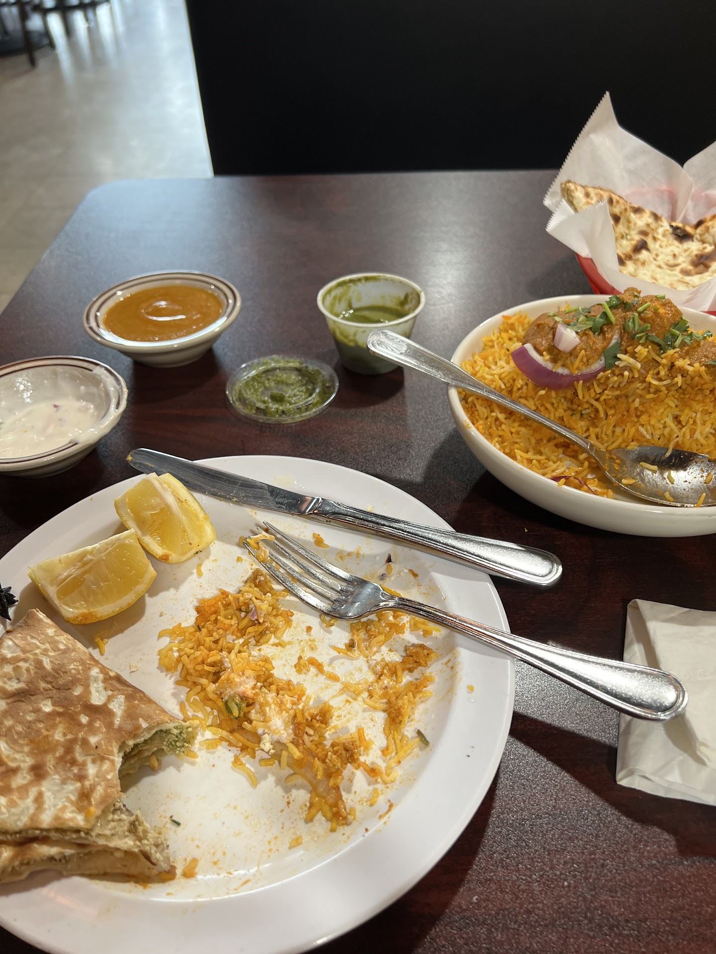 I used all the raita with my meal - it was small. I asked for a to go container. The server/cashier was hesitant - told me that I was given some al ready - he pointed to my empty bowl. He got frustrated that I asked for more. I said if they need to charge me for a side then do so - I just wanted more for my leftovers. This really was a frustrating moment because all the other minor things and then I was argued with - maybe there was a language barrier? But I don’t think so because he talked fine taking orders over the phone.