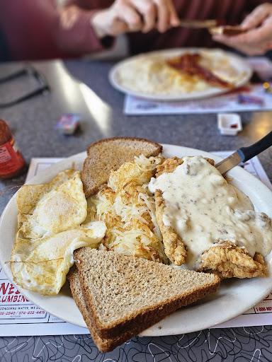 We stopped in on our way thru town around 9:25am. We were third in line and were sat down within 20 minutes. The waitress promptly took our orders. After waiting over 1 hour I overheard one of the waitresses telling a guest behind us that the kitchen was 1.5 hours behind on all breakfast orders but it would be quicker if they got lunch.