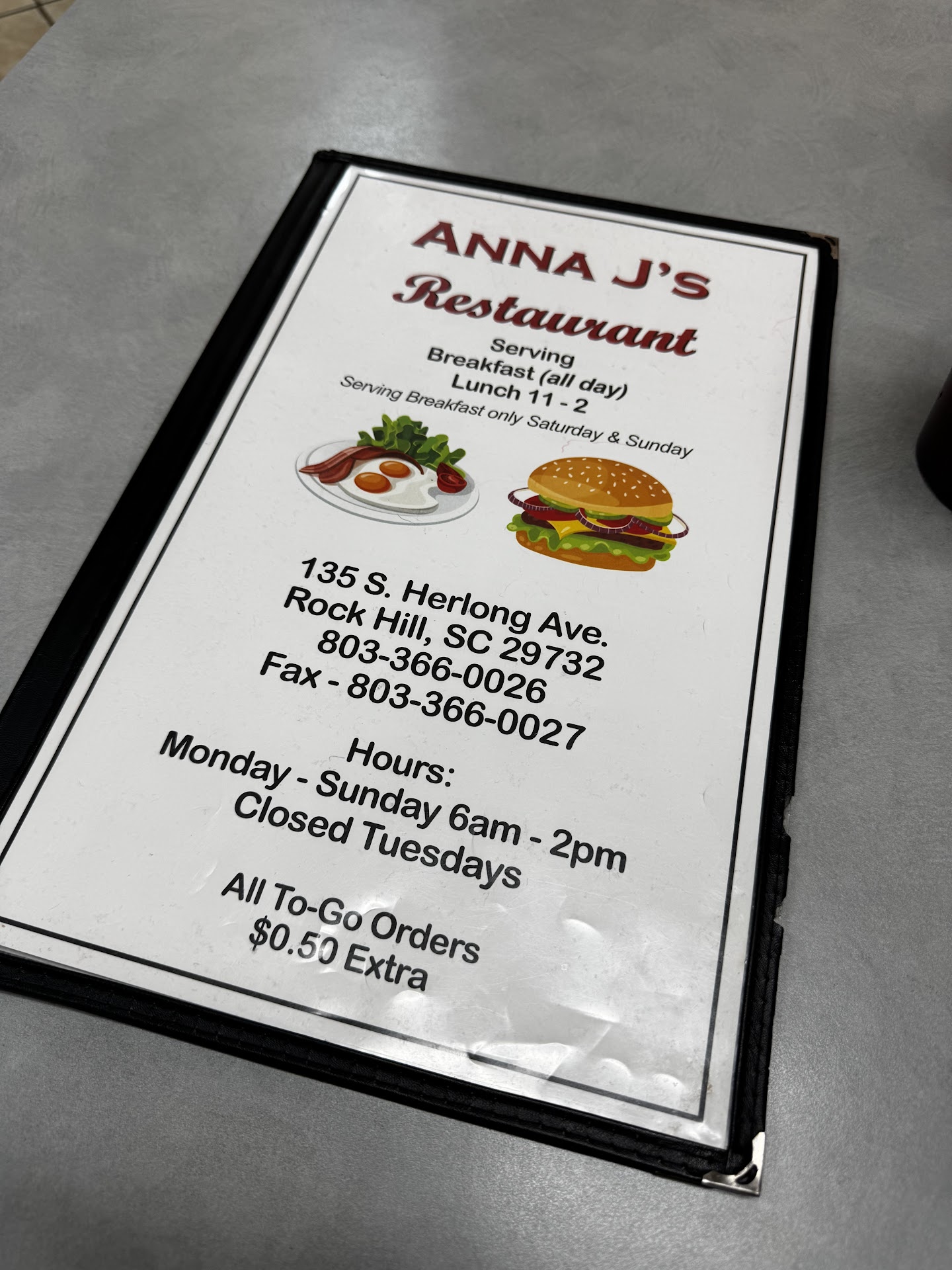 Read moreAnna Jâs was much better at the previous location. The quality of food is not there. Also I believe they precook the food and serve to order. I donât have a huge problem with this but I requested eggs not cooked near bacon grease due to dietary restrictions. I asked the waitress if this could be remade and she said sure and brought out more eggs quickly. Moments later, I see the waitress and cooks talking about my request and saying that it was the same pan of eggs. They also gave my table a scornful look after I got the ânewâ eggs. I felt uncomfortable and the decor needs an update to...