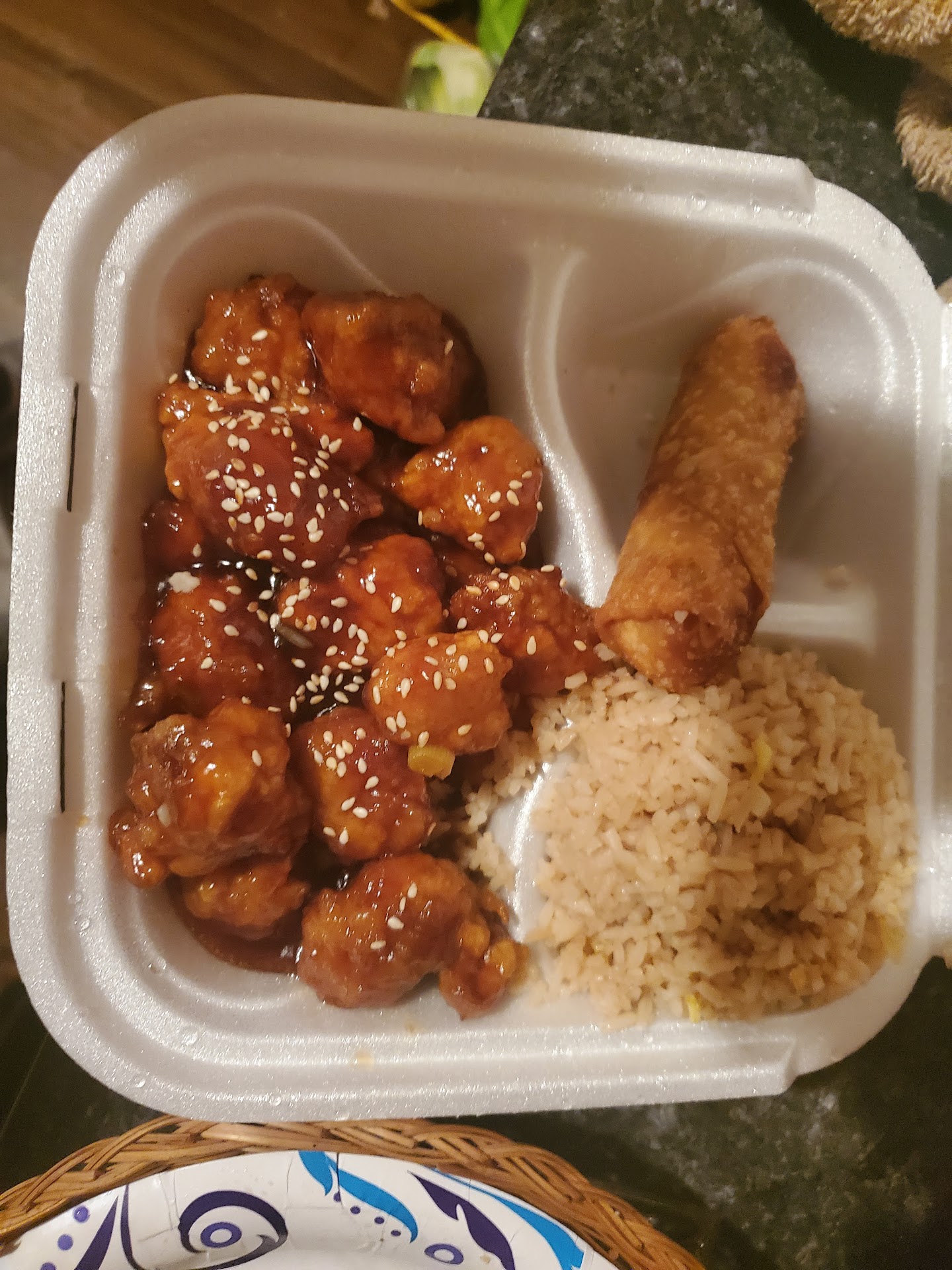When he came, he put a plastic fork and the usual Chinese paper tray. I was shocked but kept quite. He asked for our drink, which we did. He then came with plastic cup and asked that we helped ourselves with drinks from the dispenser.