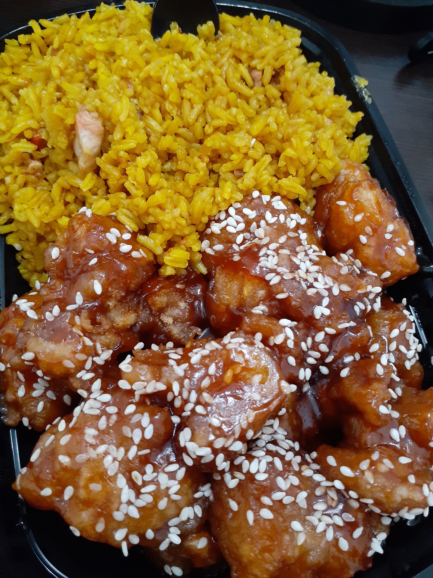 Orange Chicken with house fried rice: The orange chicken was okay good texture but that's about it the orange syrup was fairly thick but maybe that's how this restaurant makes the dish. My problem lied with the rice. Barely any vegetables or pork and the rice tasted like it wasn't authentic. Like that bagged yellow rice from Walmart that can be made in 20 mins in the microwave.