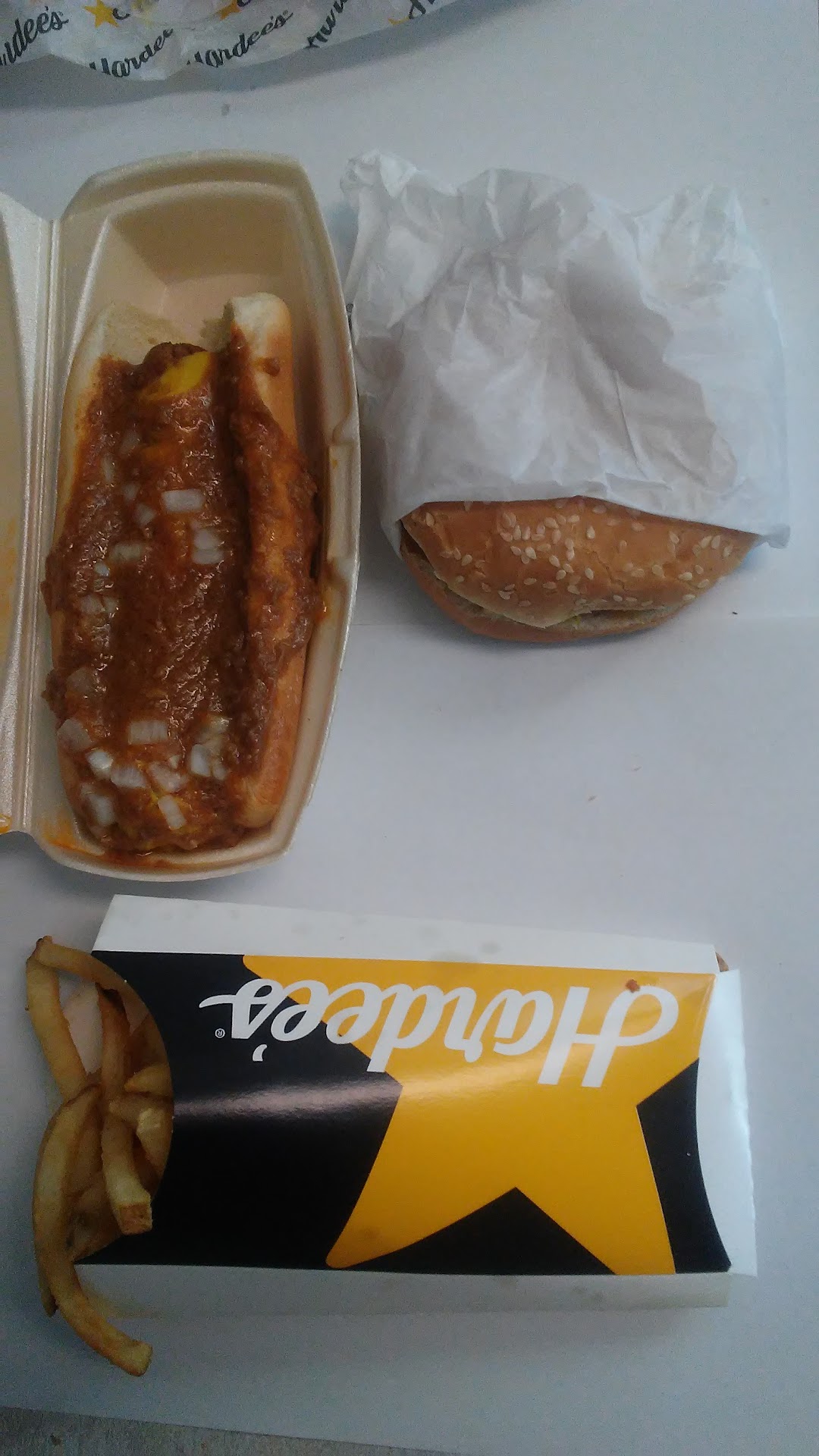 Drive thru was very efficient. The employee running the window today has been doing so the last 3 times i have been through there. She is very polite. She is very professional and keeps the drive thru moving, as one should be kept moving! This was all including a smile, snd a correct order!! I was told to come back and have a nice day. I have had a pleasant experience with this Hatdees the last seceral times i have been in this town. I will return again. Its so rare, and frankly, so unfortunate that these days you dont usually have good service at a fast food restaurant anymore! Especially in a drive-thru. Most are so slow in getting customers thru there. When u finally get your order its wrong and /or fries are cold and dumped all into the bag. U cant hardly hear them on intercom and vise-versa. When u get to the window its complete silence except for just the dollar amount said To u. Thats if u are lucky! Most of the time they just stick their hand out for the money. Or they answer when u ask them to repeat the correct amount that u were told on the intercom. Never mind getting a smile!! The drinks have drink all over the sides and bottom of cups. U have to wipe them off with your " 1 " napkin, so u do not have soda all over your car interior and your clothing!! Lol. This iHardees is a nice, clean one to eat in, and the restrooms are always CLEAN as well. If u are passing thru rather quickly next time, " Pull into the drive-thru!! If u want to sit inside and enjoy your meal, the employees inside usually greet u with a smile too!! For a Hatdees-...