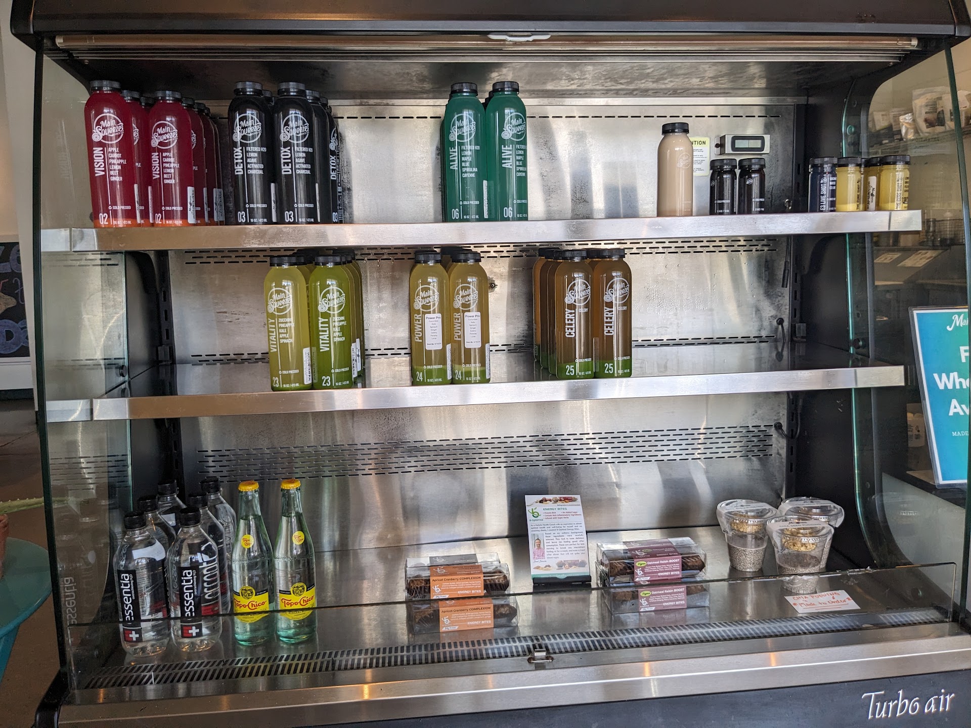 Read moreI was invited as a Yelp Elite to sample a wellness shot, a 16 oz bottled juice, and a small smoothie -- I chose the (red) Vision Cold Pressed Juice, Mango J smoothie and the Cure shot. My teens got Acaí bowls (1 berry & 1 nut). While I was waiting for our Acaí bowls to be made, the male staff gave me the remainder of the previous customer's a green smoothie that didn't fit in his cup, maybe kale with peanut butter -- it was good but not my type. The remainder of our Mango J went to the lady who order after me and she loved it, as we do. The Vision juice was also good, though I had planned to get a different juice on the website, but it was out of stock -- photo shows what was left around 1 pm on Wednesday. I have not...