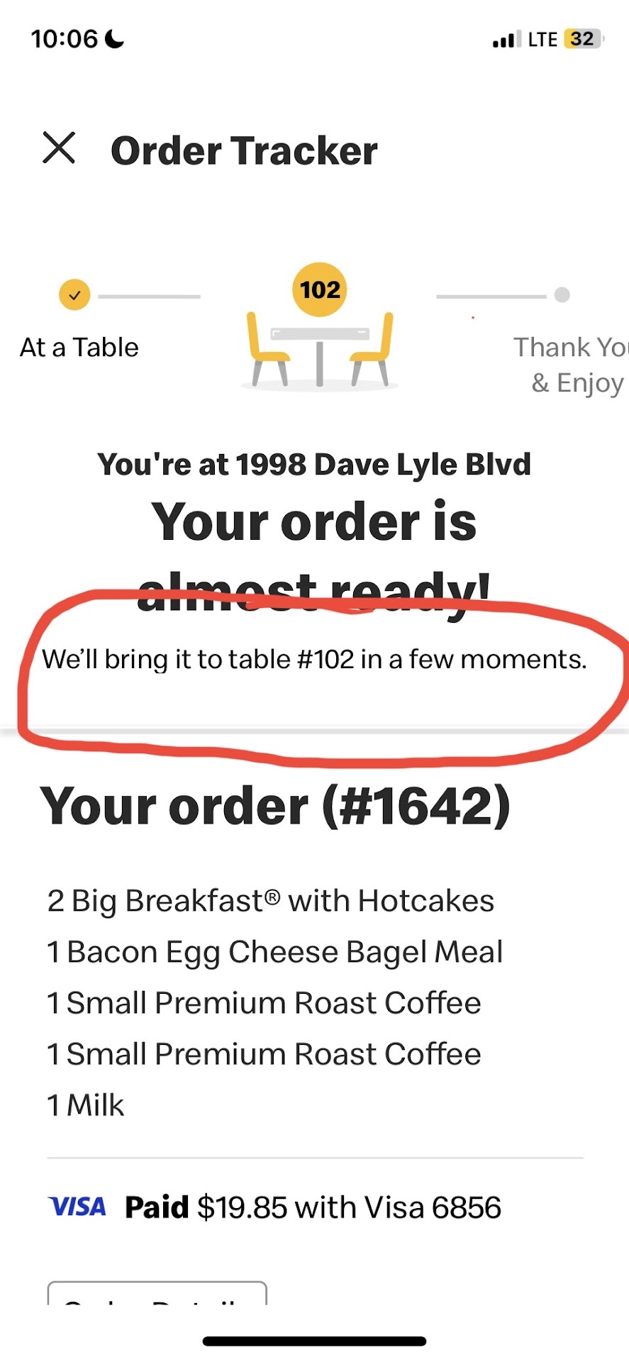 THEY DON'T BRING YOUR FOOD TO THE TABLE Despite what the ordering screen instructions tell you to do. Take one of the number tents to your table and they will bring you your food when it's ready. Somehow you are supposed to figure out that they don't bring it to your table. You have to listen for a number to be called out and go to the counter to get your food. And it's not the number that you took to the table on the little plastic tent.