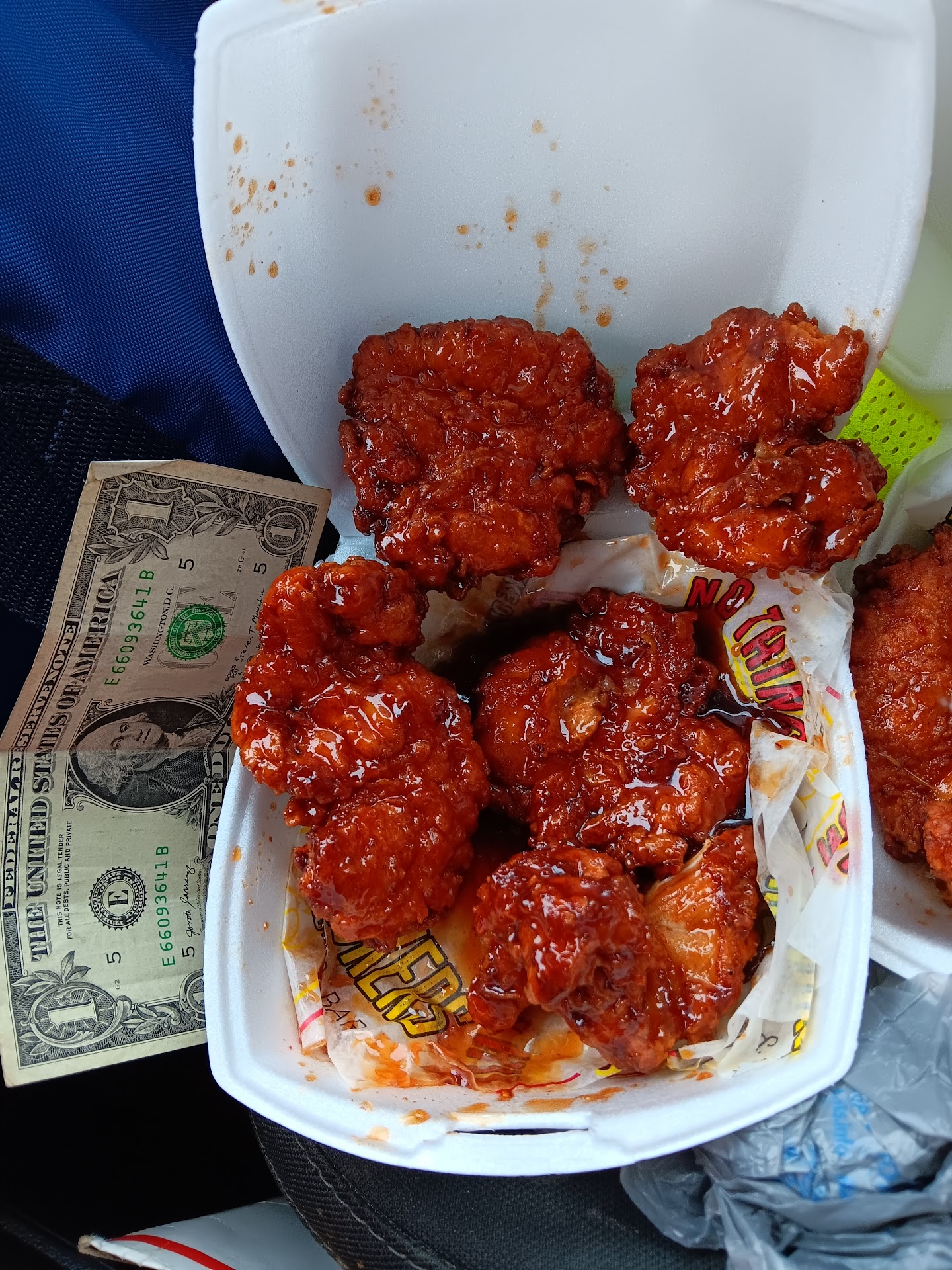 We went here last night and ordered the boneless teriyaki and bone in honey bbq wings. They were awesome, and we found ourselves still talking about them at lunch today, so we placed a to go order over the phone. We ordered boneless teriyaki and boneless Carolina tangy gold wings. When my husband arrived at Chicken Shak, they had made bone-in teriyaki and boneless Carolina tangy gold... so he waited while they "fixed" the order.