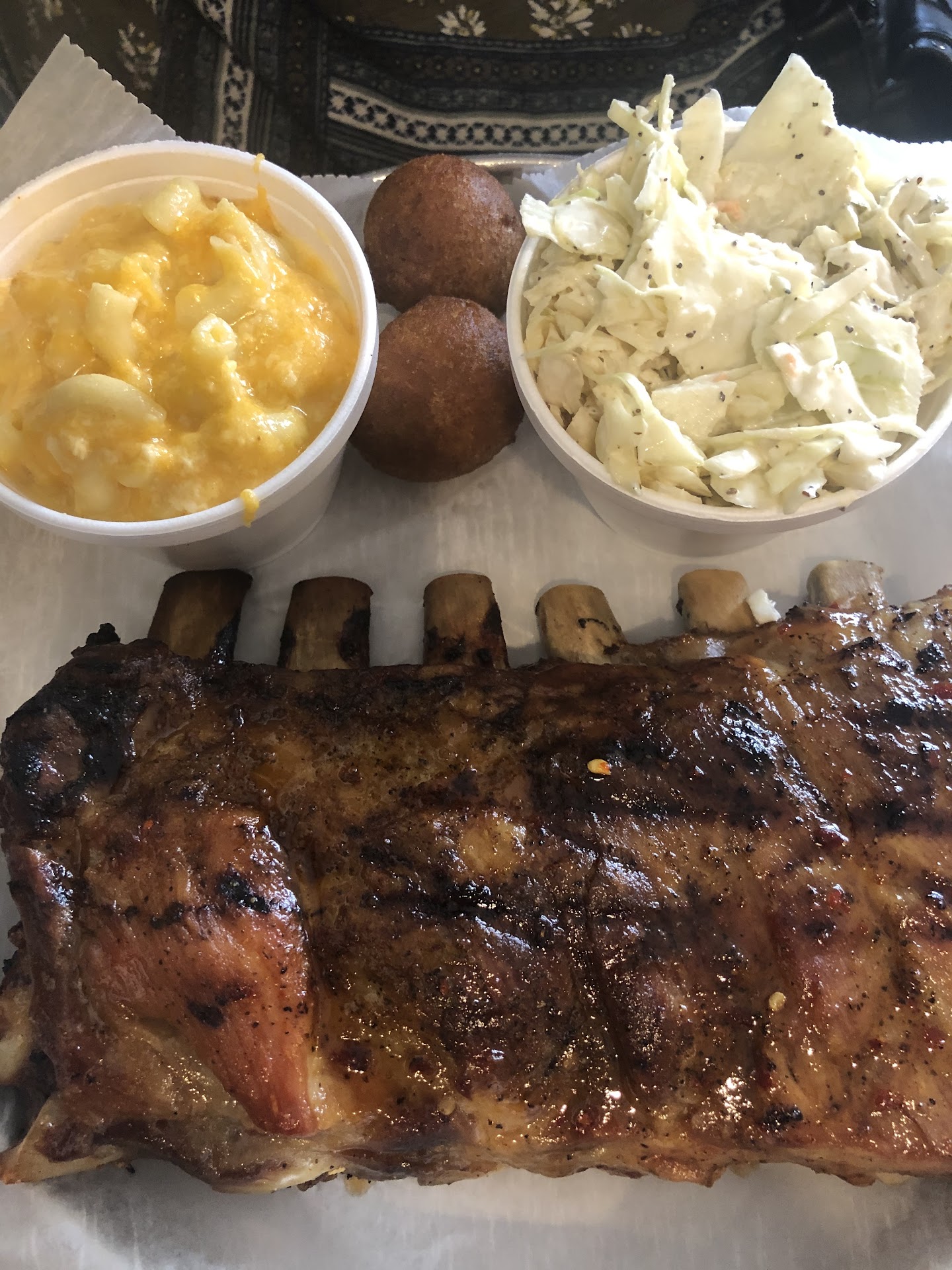 Our sides were red slaw and mac and cheese. Continuing the trend, the red slaw was delicious and by far the best I've tried. The mac and cheese was the one thing thing that fell a little short, not bad, but not great in my opinion. The plate came with a couple of hush puppies as well which were pretty good.