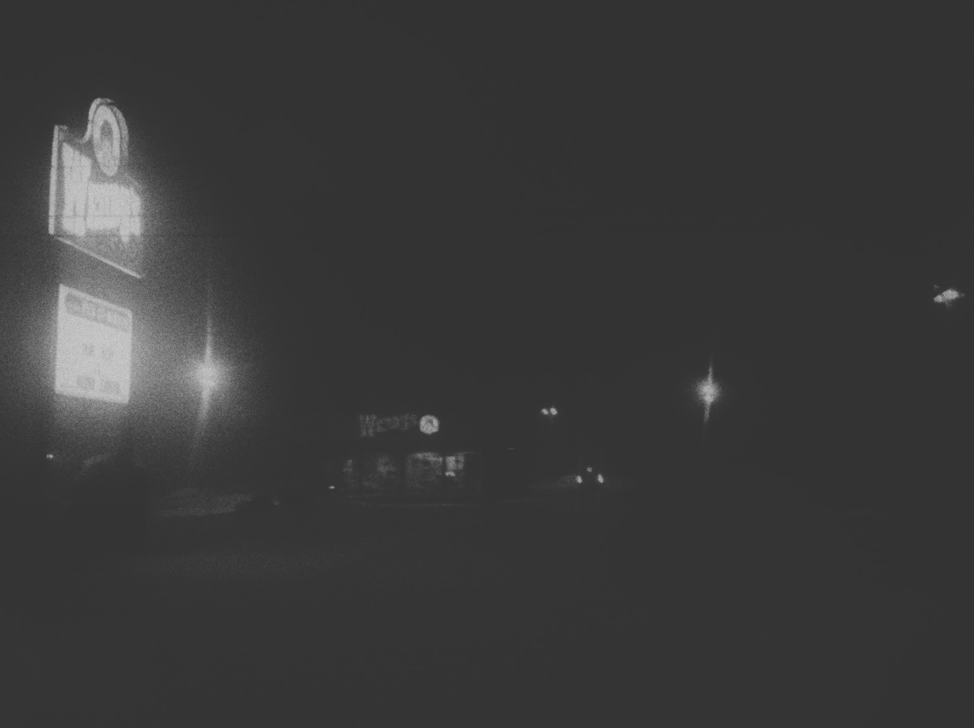 I've heard tales of a place far from mankind's failures, a place so pristine and unblemished you'd swear it was Eden. You've just entered that place. That place is here where you stand now, and you are there. W E N D Y the sign glimmers like a neutron star in its last few moments of life. You can't help but be mesmerised by the signs willpower and grace. A nearby garbage pale chimes in "Beautiful, ain't it?" Pushing the intrusive thoughts of how a trashcan is speaking to you and the massive implications of mankind throwing their waste into sentient receptacles all these years out of your head you respond "I've never seen something so bright and gravitationally pulling in my life". "Don't look too long" the pale continues "It'll singe your eyes" you now begin to see the piles of corpses with their eyesockets still steaming lining the front walkway. "Oh my, well I guess I'll go inside" you say this like you have a choice but we both know you're already trapped in the gravitational pull of the sign. You have no choice.