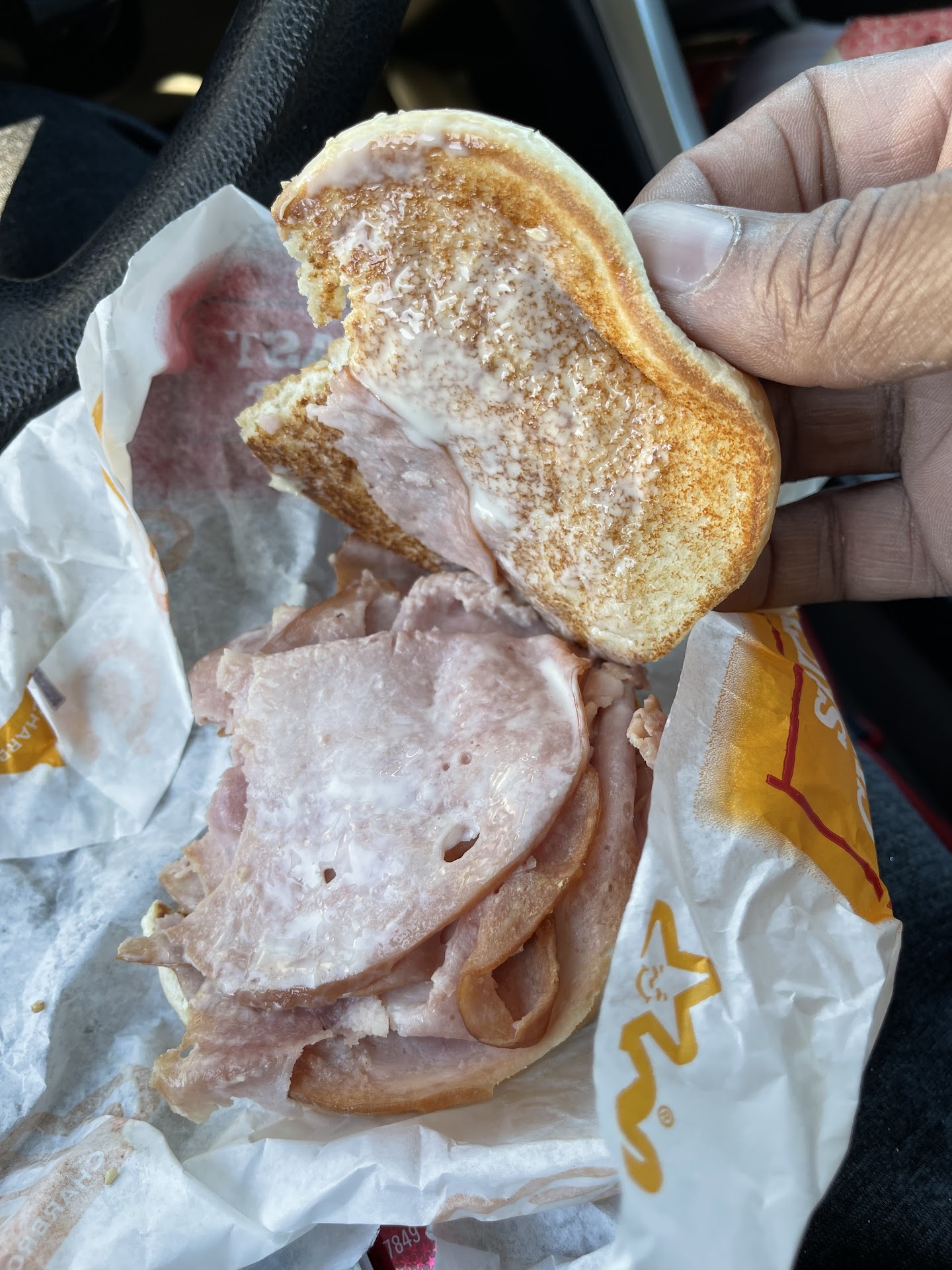 Read moreI hated to give one star but the girl that bought the food to the car was nice so she gets that one star. The food get negative stars. Waste of time and money. I don’t have Hardee’s near so while traveling, I stopped here in hopes of getting my favorite ham and cheese sandwich. I like to go in restaurants especially ones I’ve never been to. The lobby was closed. I should have just have left then but I went through the drive thru. I got to the window and it was filthy. That was a major turn off. I can’t recall seeing a drive thru window that filthy. I had already ordered so I pulled over to wait for my food. I don’t know what the hell it was but it doesn’t resemble anything I’ve ever eaten at a Hardee’s. See pic below. I thought maybe something changed so I stopped at another a Hardee’s in Iowa and asked what kind of cheese do they put on ham and cheese. She confirmed a slice of Swiss. I don’t have a clue what the white substance is on the sandwich but it isn’t a slice of cheese not even melted cheese. The texture wasn’t even right. Needless to say, I didn’t eat it and because it was so mysterious, I was afraid to eat the cherry biscuit so that $6.69 and 20 min lost that I’ll never get back. I’m...