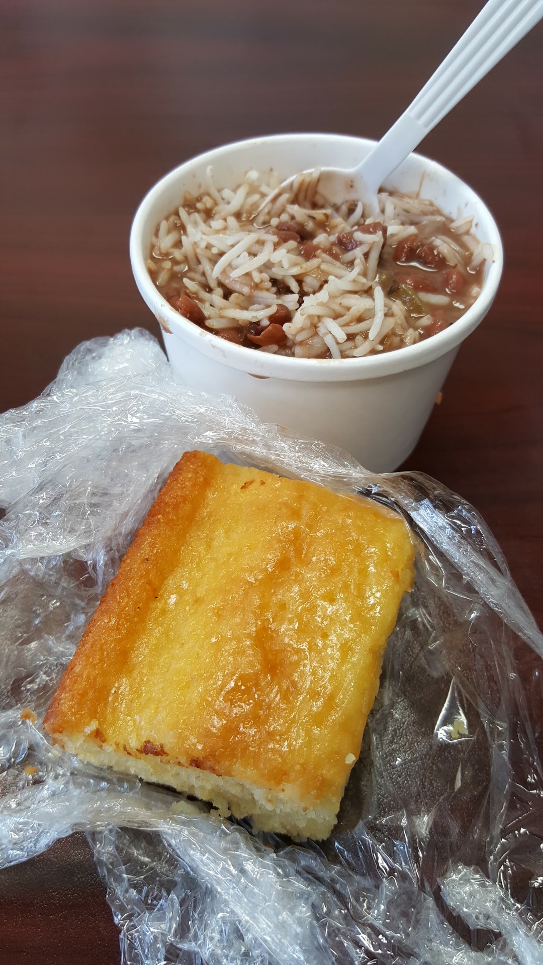 ย ย ย Read moreSo Disappointed. This place is around the corner from work, and I'm a huge fan of red beans and rice, so I was excited to give it a try. I ordered ahead, and requested a 'cup' for $5.35. I allegedly received a 'bowl' and was charged $7.50. The container it's in is roughly equivalent to a 1 cup measuing cup. This is overpriced at $5.35, so to find out it was $7.50 was painful. Adding insult to injury, the cornbread is an additional charge. It's only 75 cents, but after paying $7.50 for the beans, it's a smack in the face. Topping things off, the beans were not warm, and the cornbread still had a chill to the touch, as if it were baked yesterday and refrigerated overnight. After giving it all a warming zap in the microwave, I can report that the food is really good. I gobbled it down quickly. But I did not get the amount I would have expected for the price I paid, and I am unlikely to spend like this again when, soon enough, I can hop over to Popeyes and get twice the beans for half the price. Or just make my...