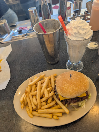 Read moreWhat a hidden gem. We stopped here on the way home from Colorado Springs, CO to Vancouver WA. Towing a 38' fifth wheel can be challenging but there is a large parking lot across the street that fit us fine. Walking into the establishment sent us back to the good old days. It looked like a 50's diner with all of the usual memorabilia, great music playing, people having conversations and delicious looking food. The staff was very friendly and the place was clean. We all ordered something different and none of us were disappointed. The burgers were fantastic and cooked to perfection. They really know how to make a milkshake. They bring it out loaded in a tall glass topped with the usual goodies along with the metal container used for mixing (no skimping here). The fries and sauce finished it off. We will defiantly add this place to our must stop list for future road trips. Give them a try, you won't be...