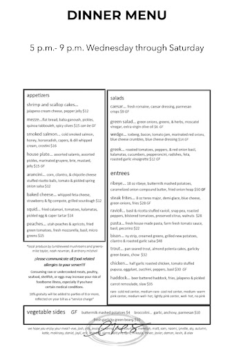 My husband and I decided to eat here bc it looked like one of the nicer restaurants in town. The building was a bit rundown. We were seated immediately upon arrival, but no one came over to our table to even bring us water for 10 minutes. In the meantime we were sitting there sweating bc the AC wasn't on, so I went out on the patio to check the temp out there. It was about 20 degrees cooler, so when she brought us our water we ordered martinis and salads and asked if we could sit outside. She told us the building is owned by the county and they refused to turn the air on. After sitting outside, another girl with short hair wearing yoga pants came over to our table and took the other 2 chairs and moved them to the table next to us without saying a word. We weren't using them, but it was just strange that she didn't even acknowledge us. Our drinks, salads, and bread came out very close to each other, so we ate our salads before the bread. The same short haired girl came over and took our bread plates off of the table, again without saying anything, before we even had a chance to use them. Not sure why she was so gung-ho about taking everything from us. I liked my martini except that there were chunks at the bottom (probably from the olive juice), but my husband's had an odd sweet taste to it. My husband had the Caesar salad. He didn't really comment on it, besides asking me what was on top. I tried a piece and it was a parmesan crisp, which was really good. I had the anoixi salad, which was delicious but there was WAY too much dressing on it.. I think it was just olive oil. For our mains, my husband ordered the filet and I had the lamb. Both were well done on the outside and raw on the inside (my husband ordered medium) He said that his steak was good quality meat, but had no seasoning on it. My lamb was the opposite - way too much seasoning. It's a good thing I like pepper and spices. My husband wasn't impressed with the sides for his dish (rutabaga mash and chard) bc he's more of a meat and potatoes kind of guy, but I liked all of the sides. We each ordered a glass of wine when we ordered our mains, but they didn't come out until we were almost done eating. Our waitress apologized for the delay and said she forgot about them. She was really nice, but clearly not very organized. We sat there for almost 2 hours and there weren't even 10 tables in the whole restaurant between the 2 waitresses. While the food concepts are great, the execution and service is lacking. It may be expensive for that town, but luckily it wasn't expensive compared to what we are used to being from Denver. I give...